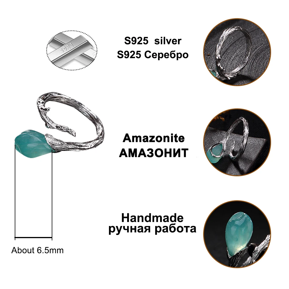Ring Silver 925 Amazinite Vintage Ring Handmade Fine Jewelry 925 Silver Jewelry Rings For Women JZ49001