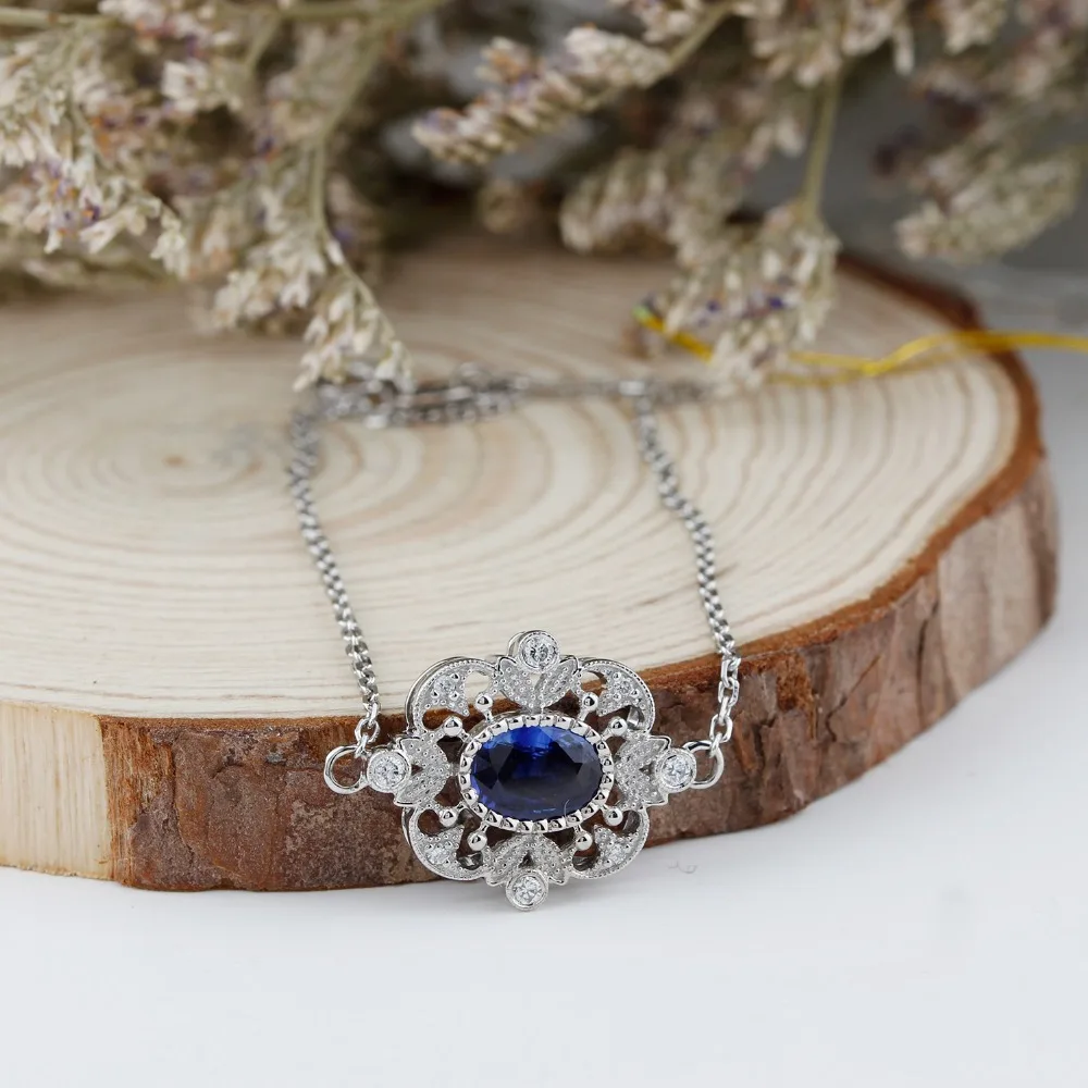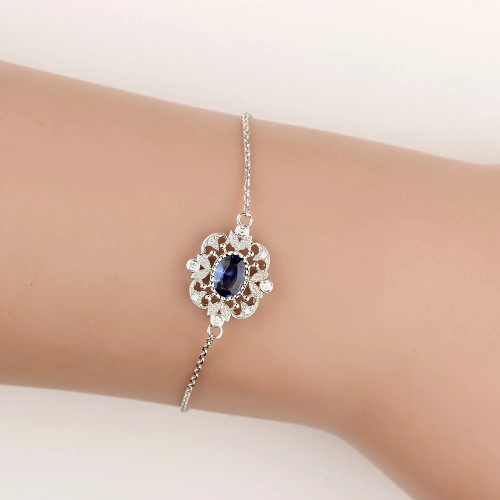 0.75CT Luxury Vintage Oval Shape Sapphire Gemstone Bracelet Natural Diamond 18K White Gold Half Circle Diamond Bracelet