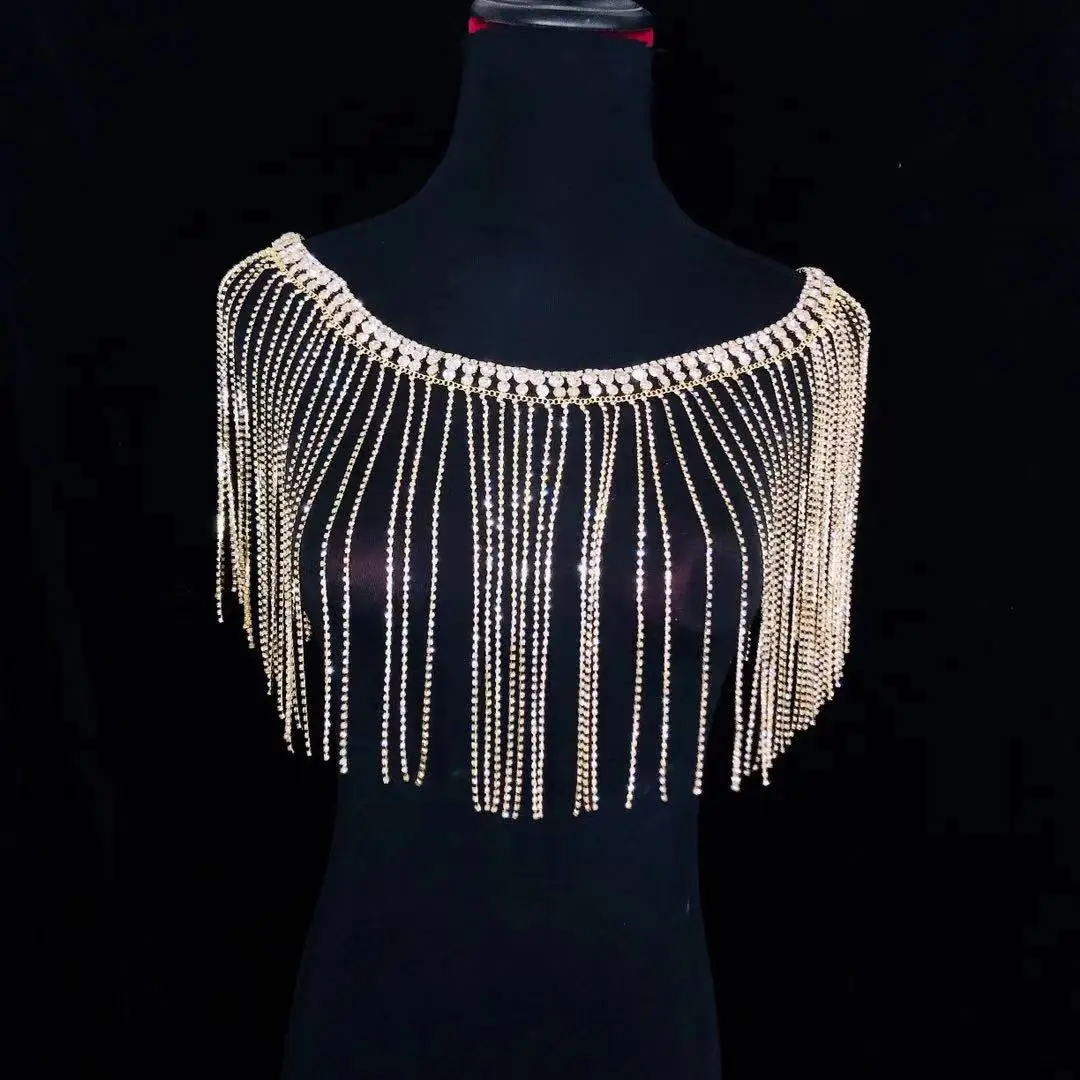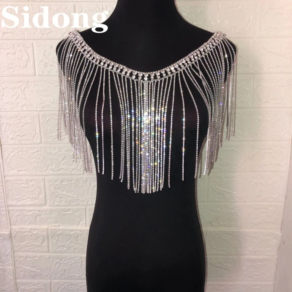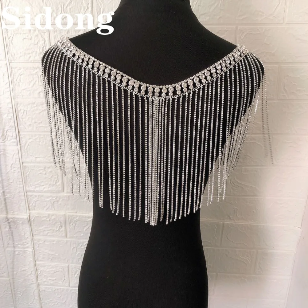 Latest handmade Bridal Crystal tassel shoulder chain necklace women's Wedding Crystal shoulder jewelry statement necklac