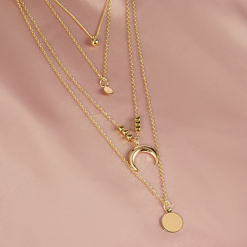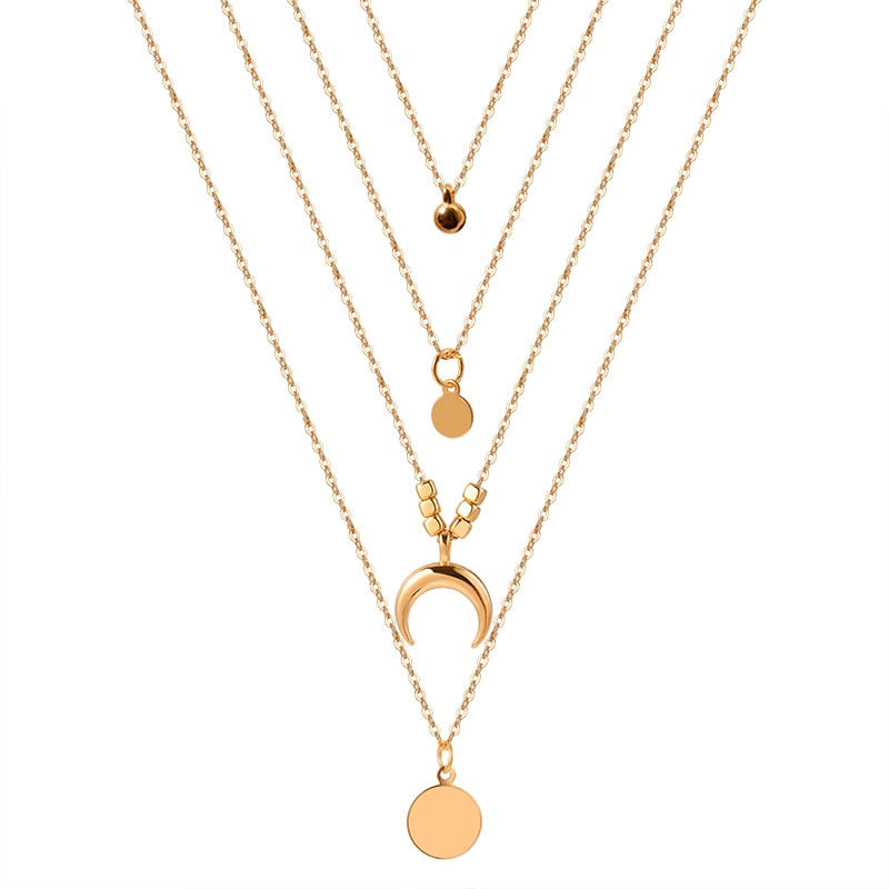 LATS Collier Chain Necklace Multilayer Moon Stainless Steel Disc Gold Pendant Necklace For Women Trend Female Jewelry Collar