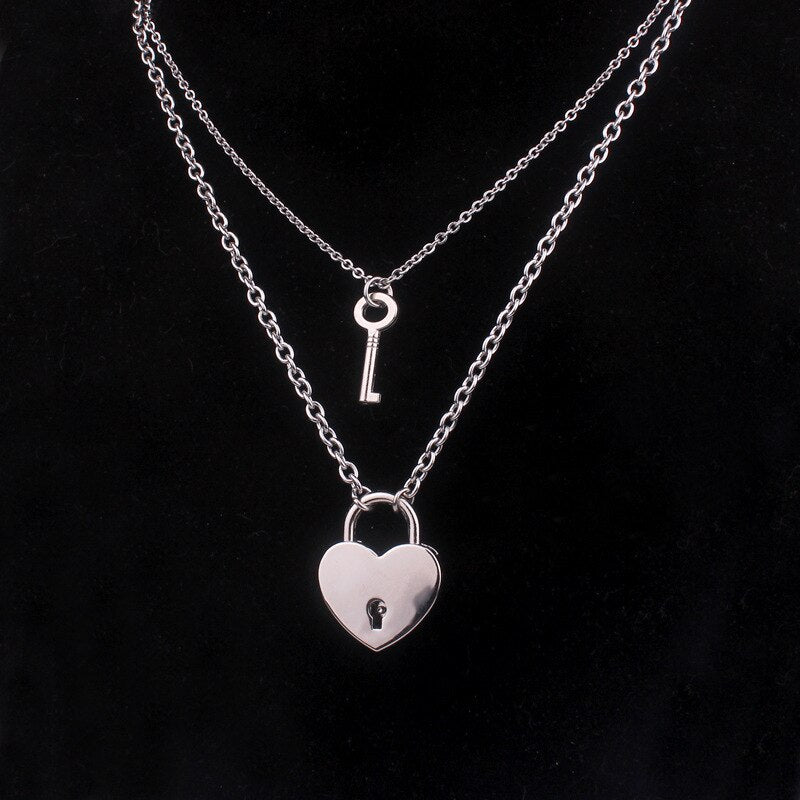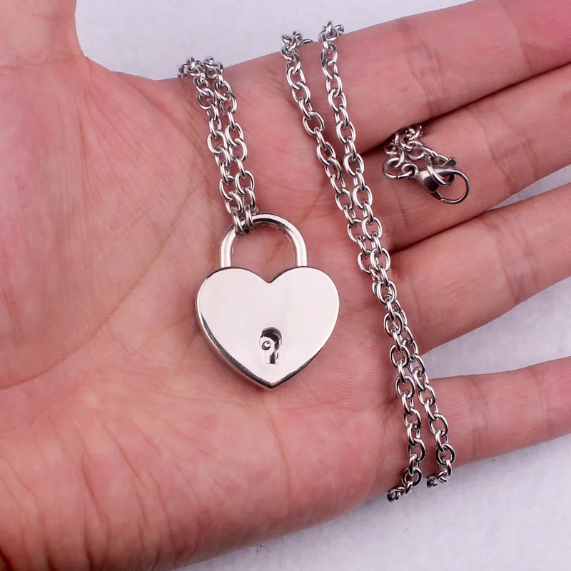 layered chains hiphop Punk Stainless Steel Padlock Necklace men rock heart Lock with key Necklaces for women