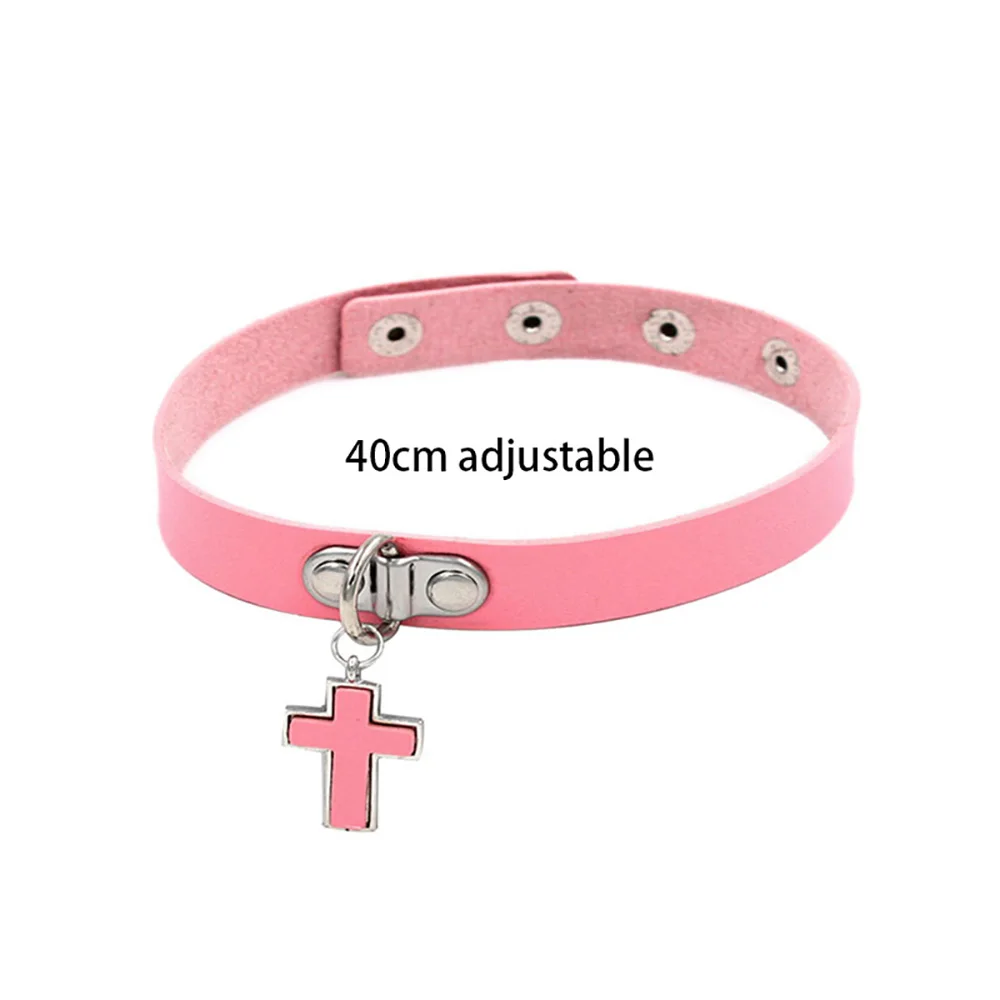 Leather Cross Choker Necklace Chunky Necklace Rock Sexy Cool Punk Goth Gothic Collar Steampunk Necklace Chokers for Women Men