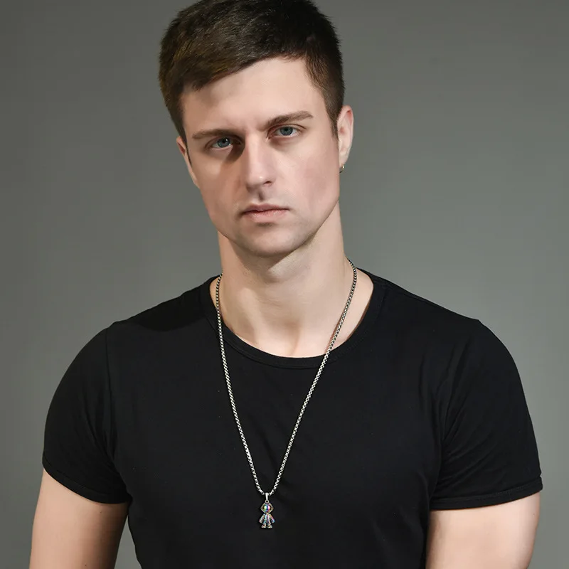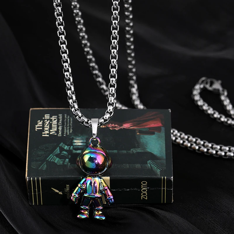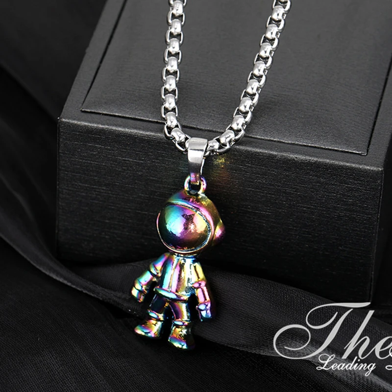 LEEKER cool astronaut pendant stainless steel necklace men trendy simple rainbow color jewelry 2021 295 LK2