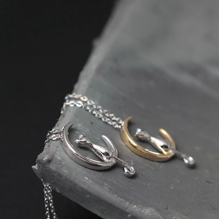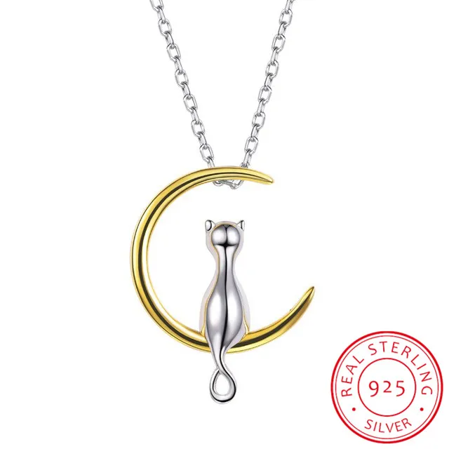 100% 925 Sterling Silver Cat/Kitten Sit on Moon Pendant & Chain Valentine's D Gift For Women Animal Jewelry Necklace