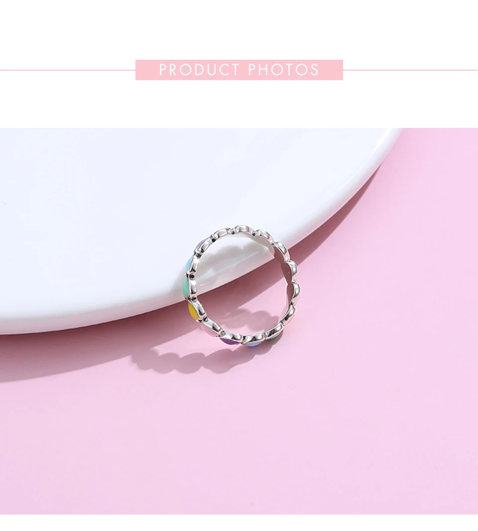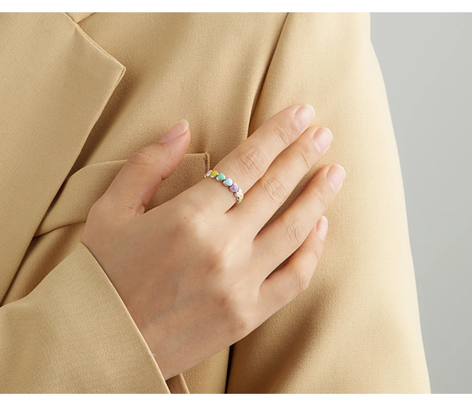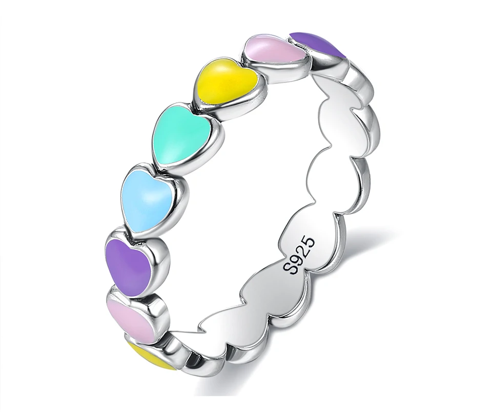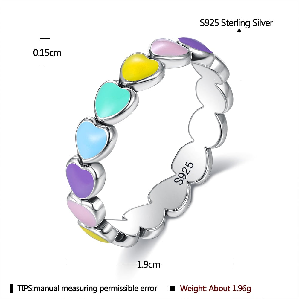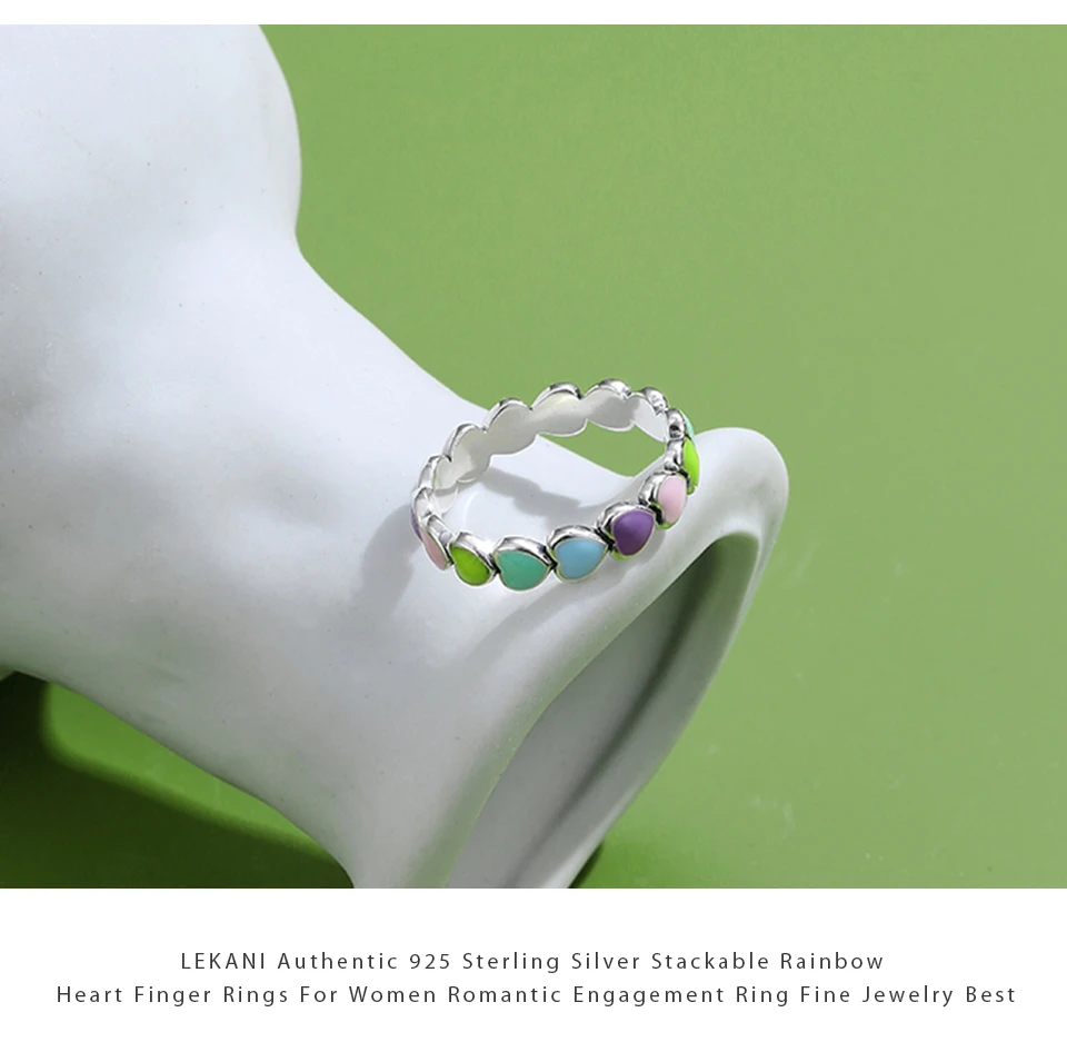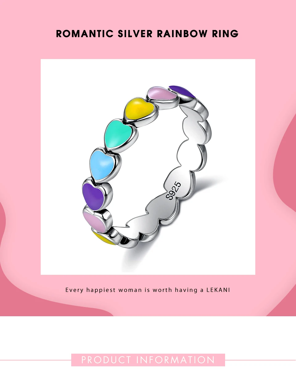 LEKANI Authentic 925 Sterling Silver Stackable Rainbow Heart Finger Rings For Women Romantic Engagement Ring Fine Jewelry