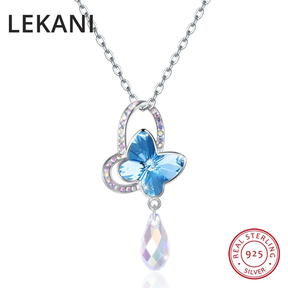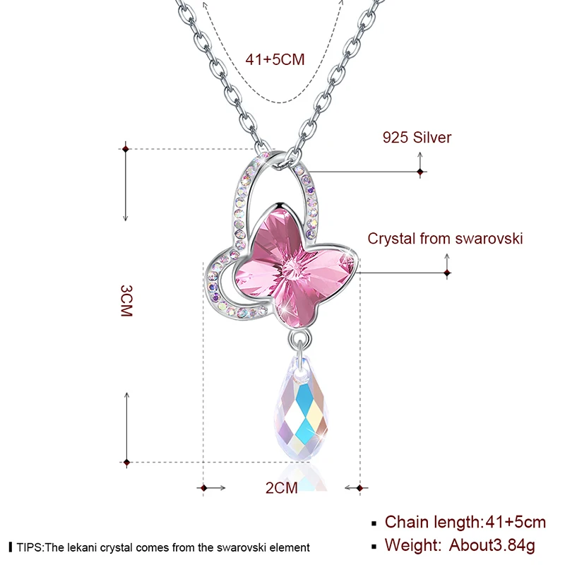 Crystals From SWAROVSKI Butterfly Water Drop Pendants Necklaces For Women Cute Fine Jewelry S925 Silver Chain Collares