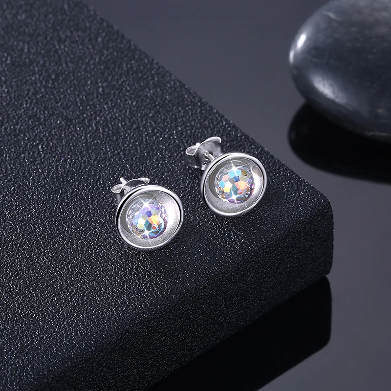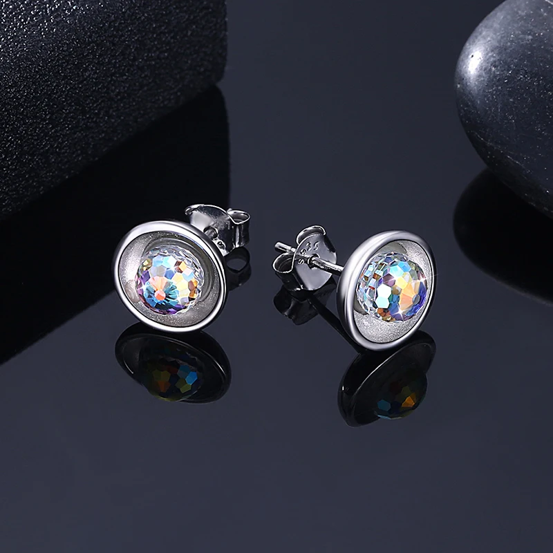 Crystals From SWAROVSKI Colorful Ball Beads Stud Earrings Piercing S925 Silver Fine Jewelry For Women Girls Trendy Gifts