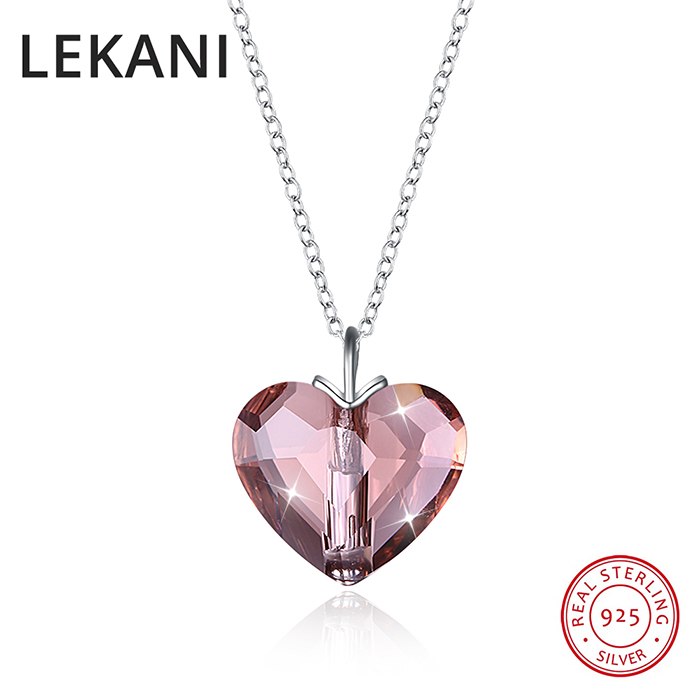 Crystals From Swarovski Fine Red Heart Pendant Necklace For Women Real S925 Silver Collares Lovers Valentine's D Gift