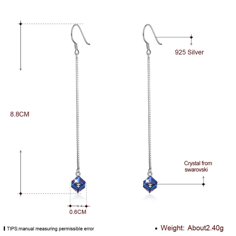 Crystals From SWAROVSKI Long Chain Cube Beads Drop Earrings S925 Sterling Silver Piercing Women Fine Jewelry