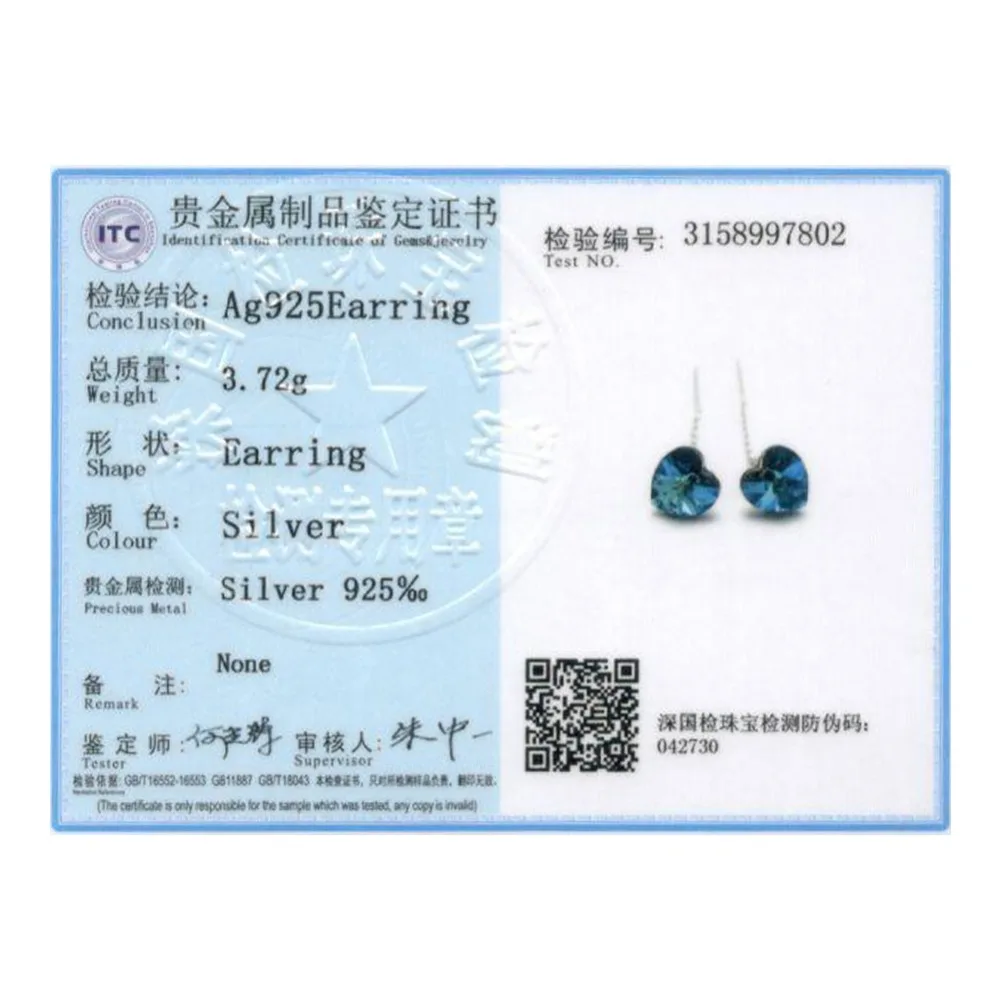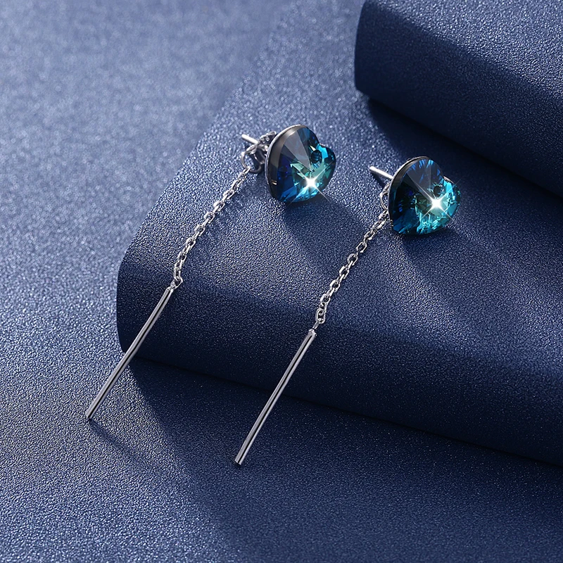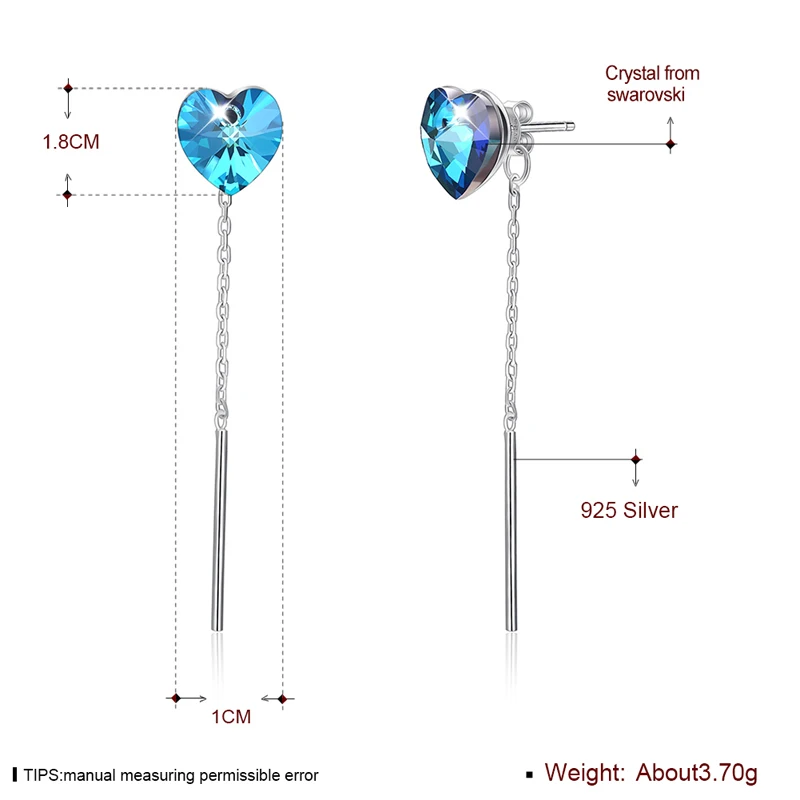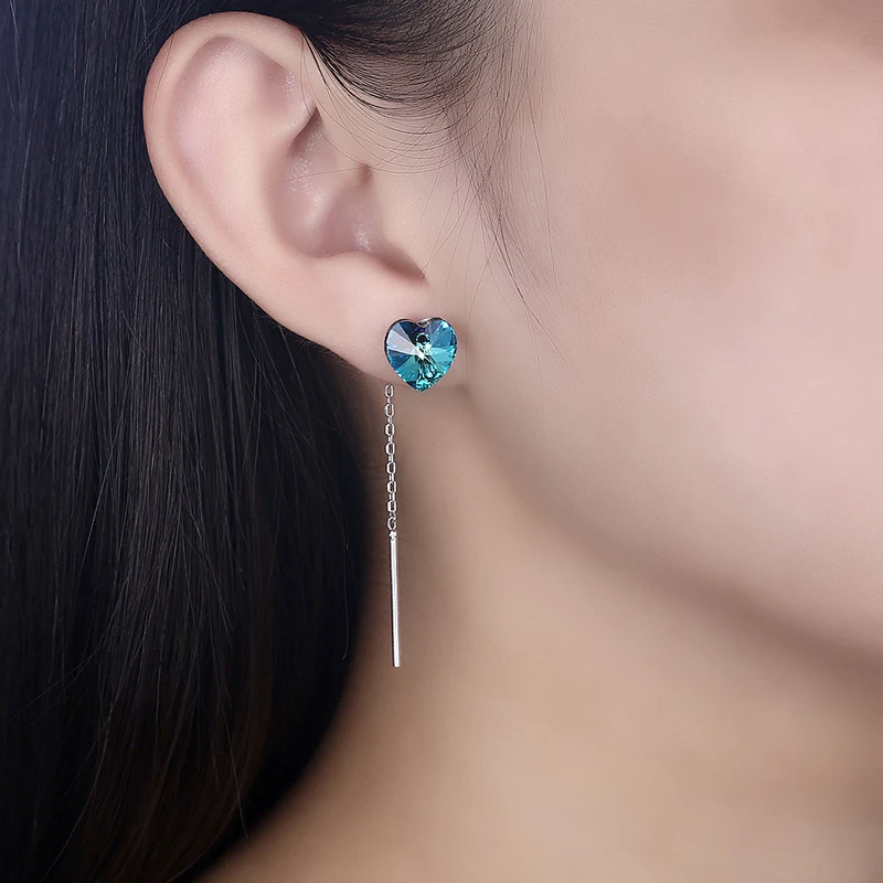 Crystals From SWAROVSKI New Heart Shaped Stud Earrings Long Chain Piercing S925 Silver Fine Jewelry For Women