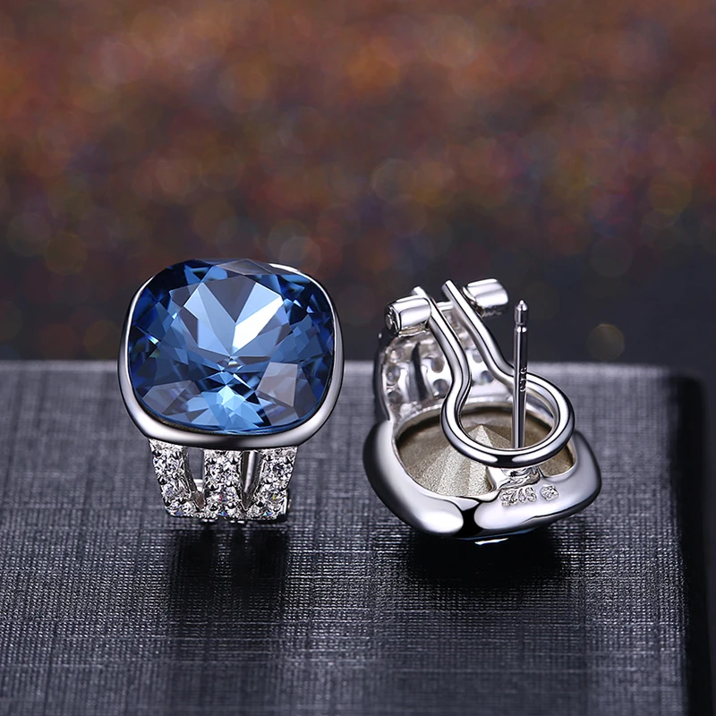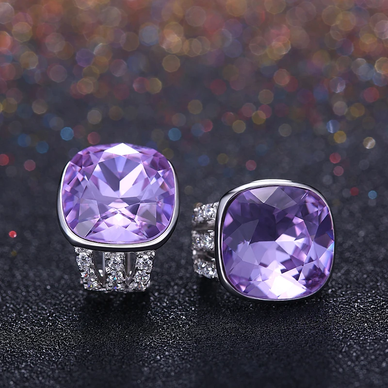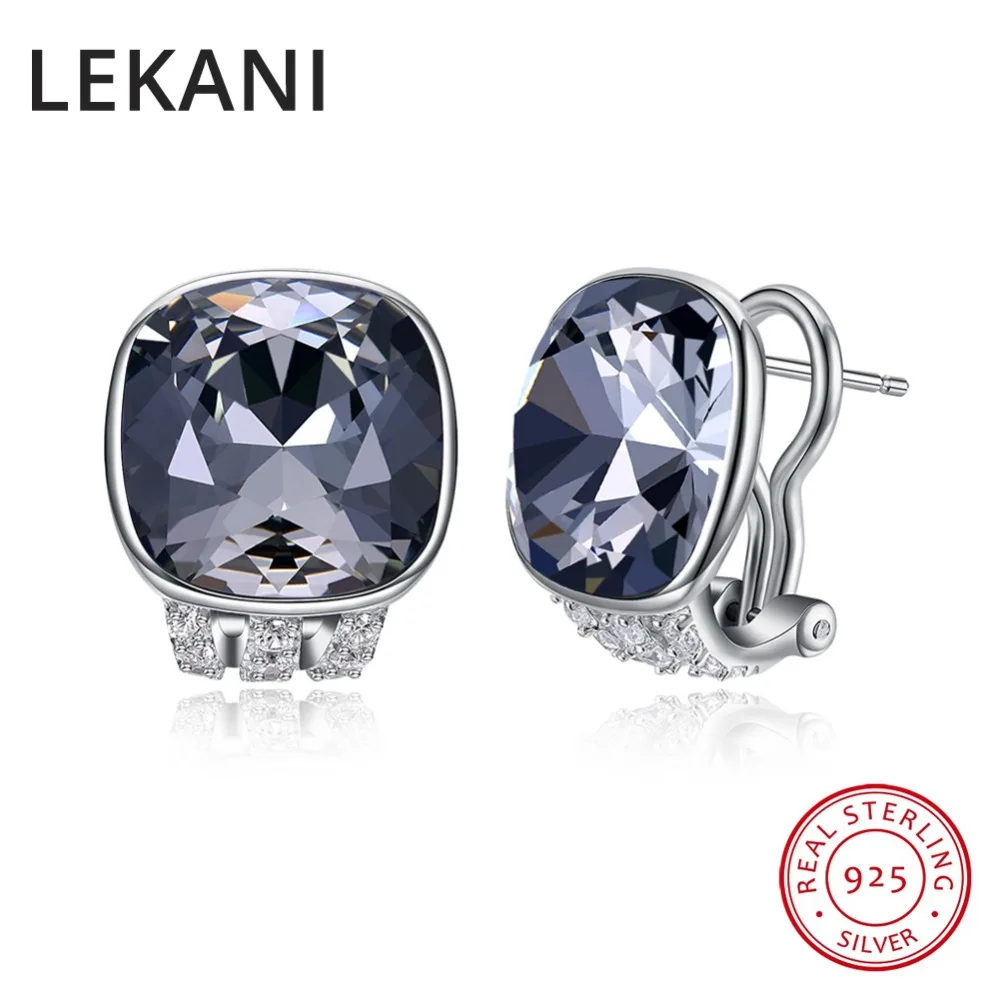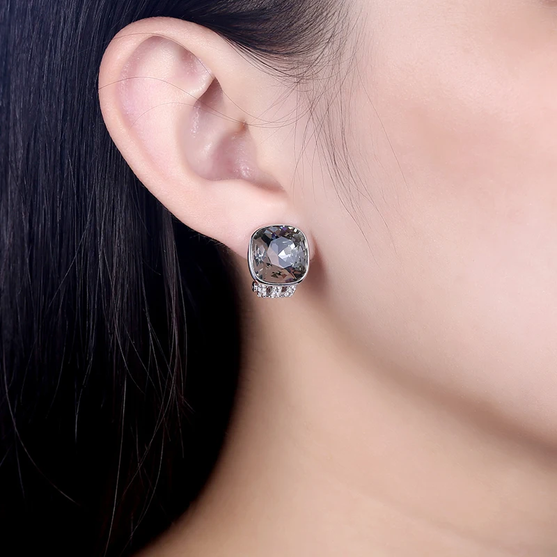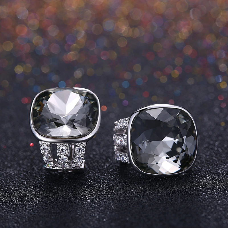 Crystals From SWAROVSKI New Square Shaped Stud Earrings S925 Silver Piercing Vintage Fine Jewelry For Women Girls Gifts