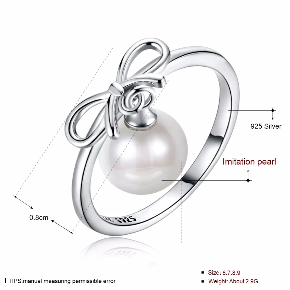 Elegance Bowknot Ring 925 Sterling Silver Ring 7-8mm White Freshwater Pearl Ring Fine Jewelry 2020 New