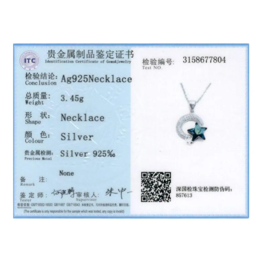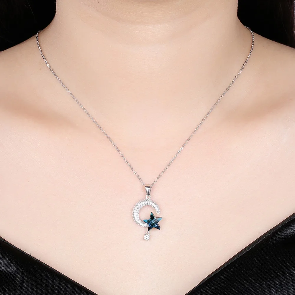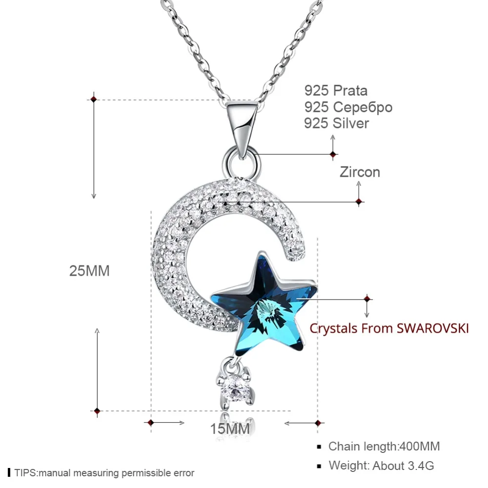 Genuine 925 Sterling Silver Crescent Moon & Star Crystal From SWAROVSKI Pendant Necklaces for Women Fine Jewelry Gifts