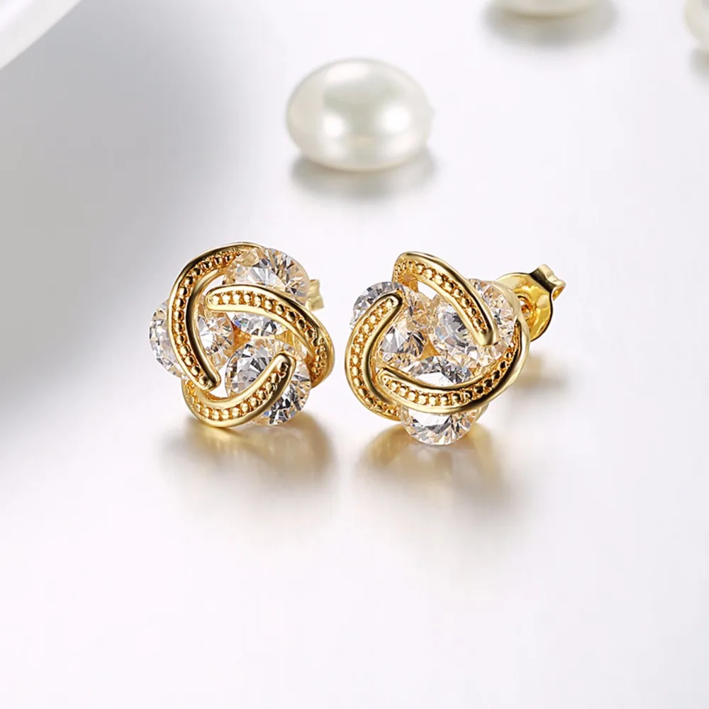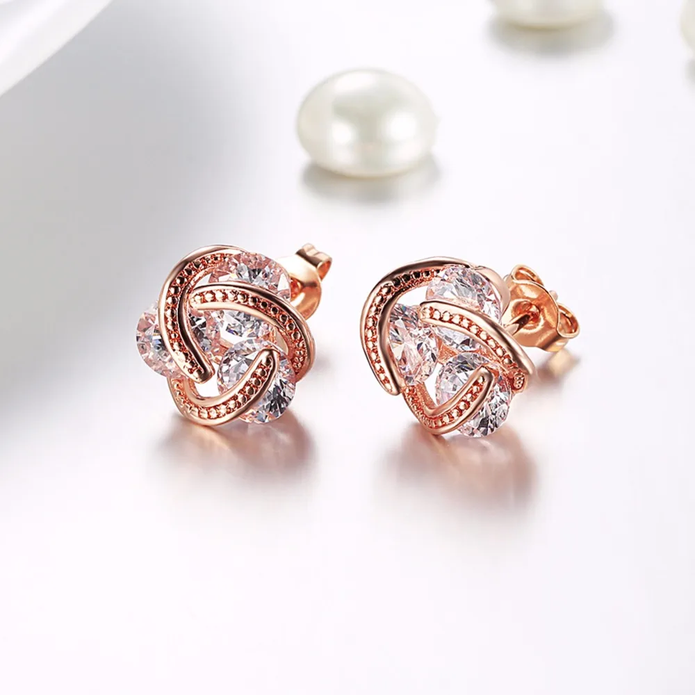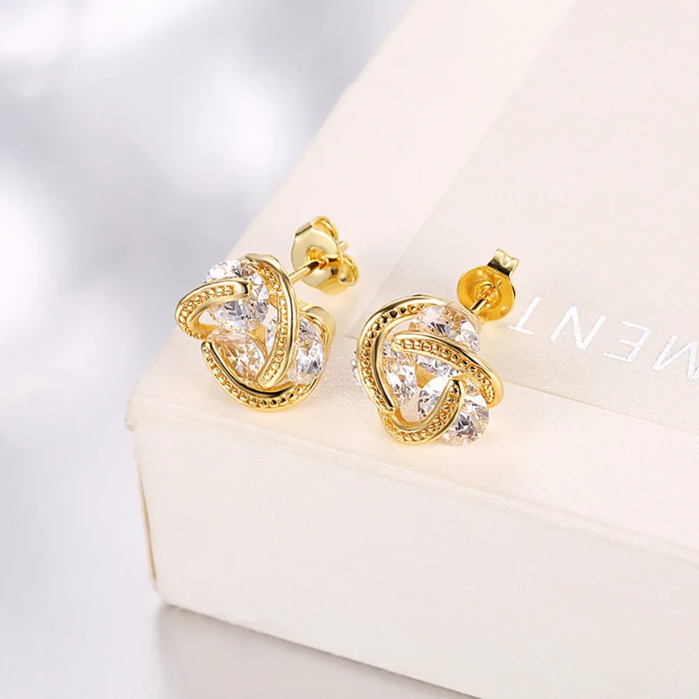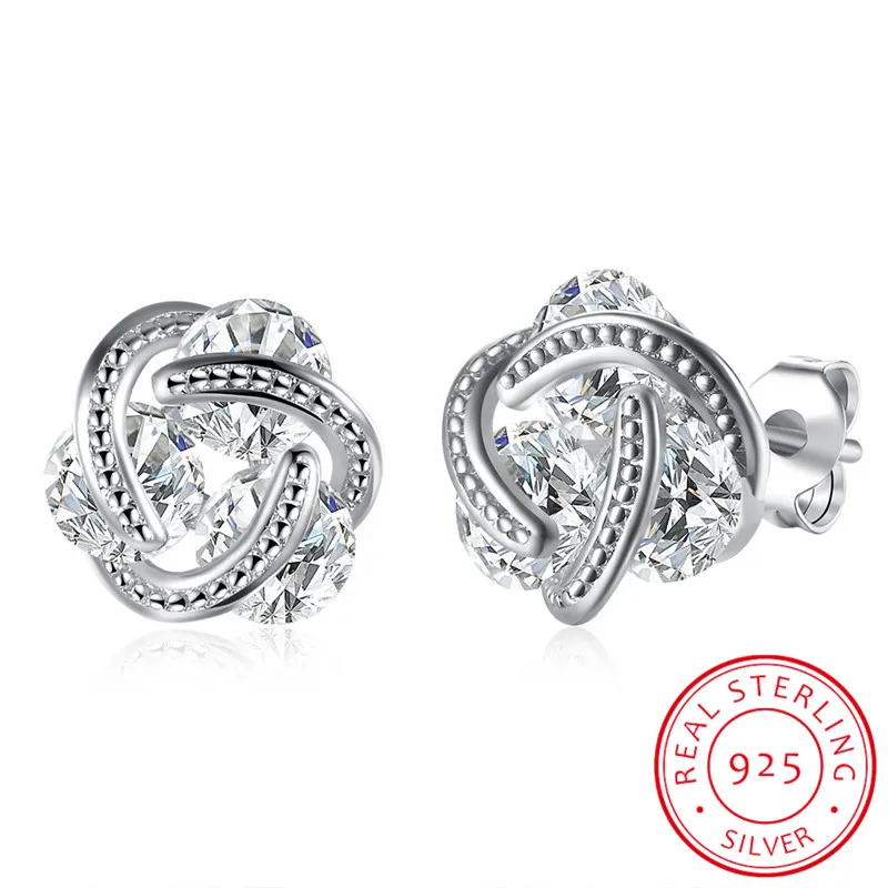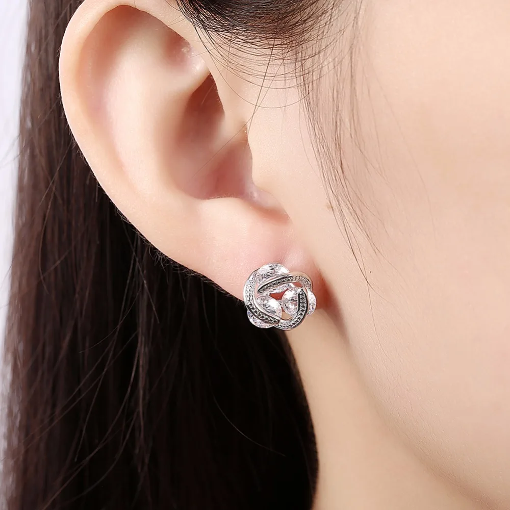 New Trendy 925 Sterling Silver Knot Stud Earrings for Women Triple Colors Metallic Earring Party Fine Jewelry