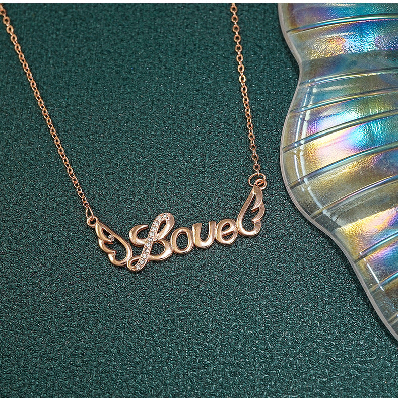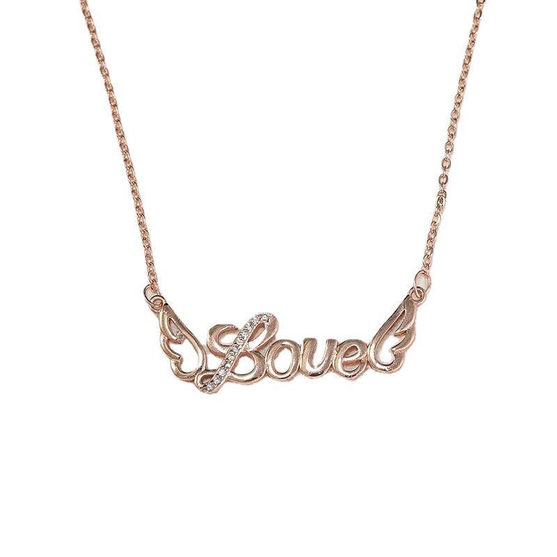 letter necklace female Korean simple girl heart rose gold wild clavicle chain s925 sterling silver women's neck chain