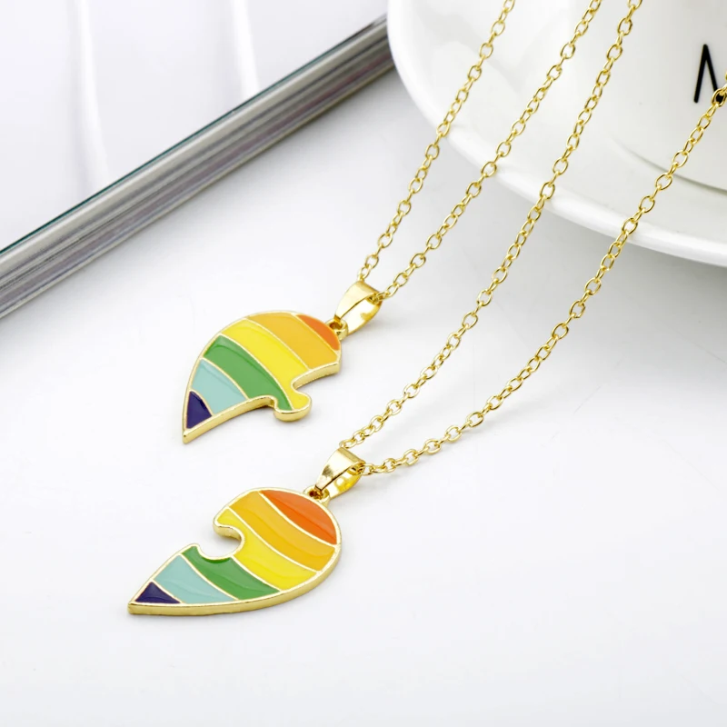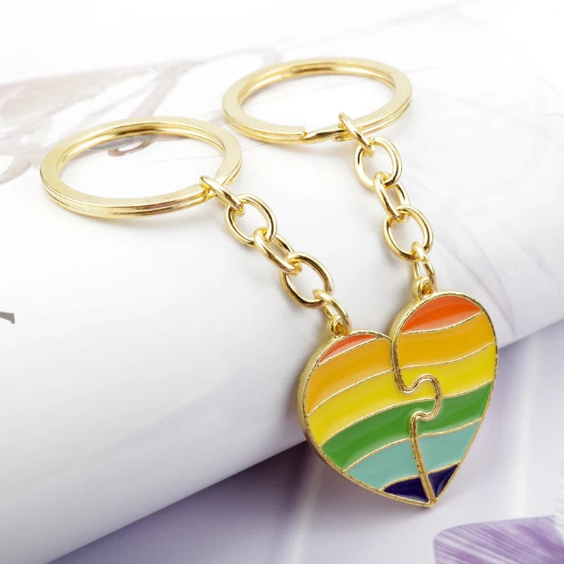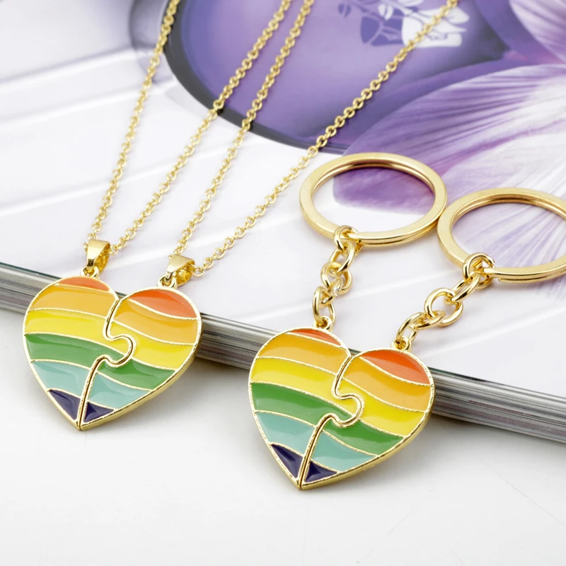 LGBT Gay Lesbian Creative Heart Rainbow Couple Metal Enamel Pendant Necklaces keychains Jewelry Gift
