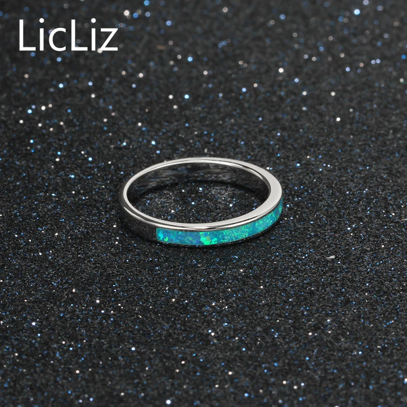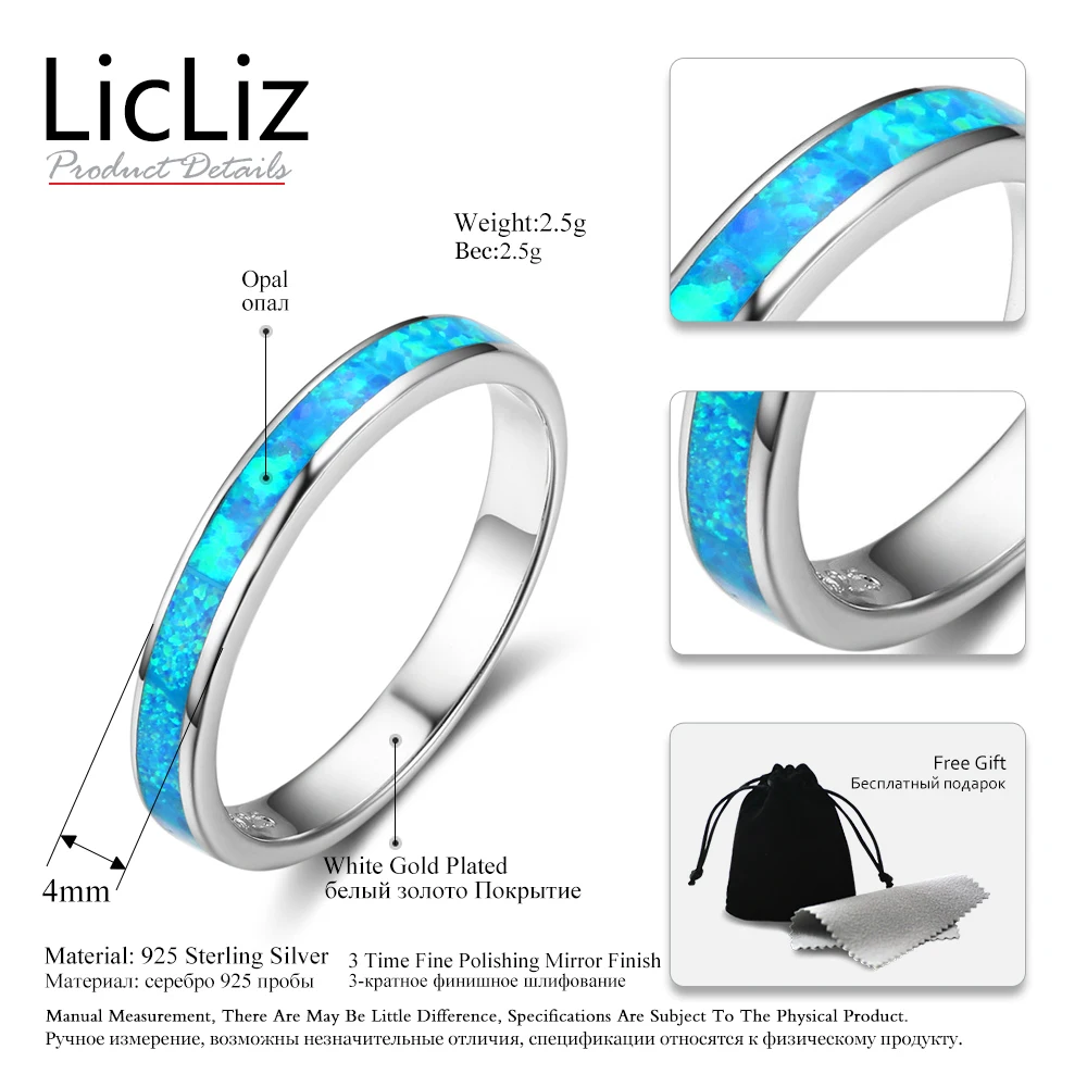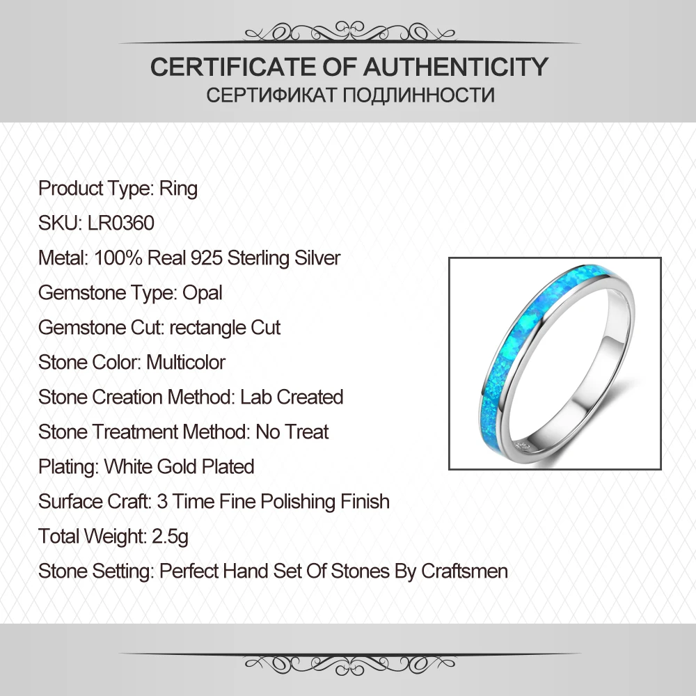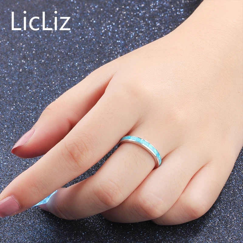 925 Sterling Silver Wedding Band For Women Plain Blue Solitaire Opal Ring Engagement Ring Gemstone Eternity Rings LR0360