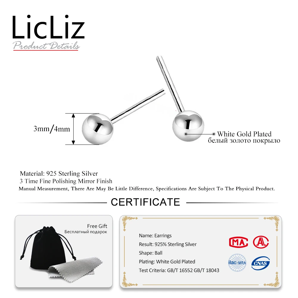 Round 925 Sterling Silver Ball Stud Earrings For Women Ear Piercing Ear Studs Earings Simple Post Earrings Brincos LE0401