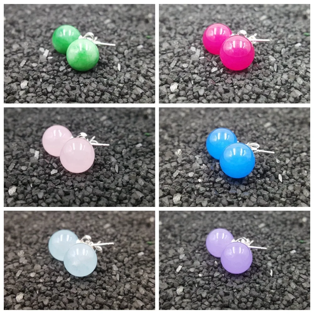 Real 925 Sterling Silver Natural Stone Dyed Color Beads Stud Earrings For Daily Wear