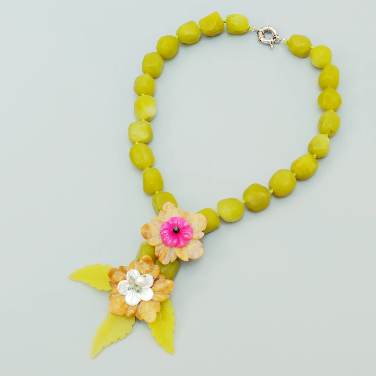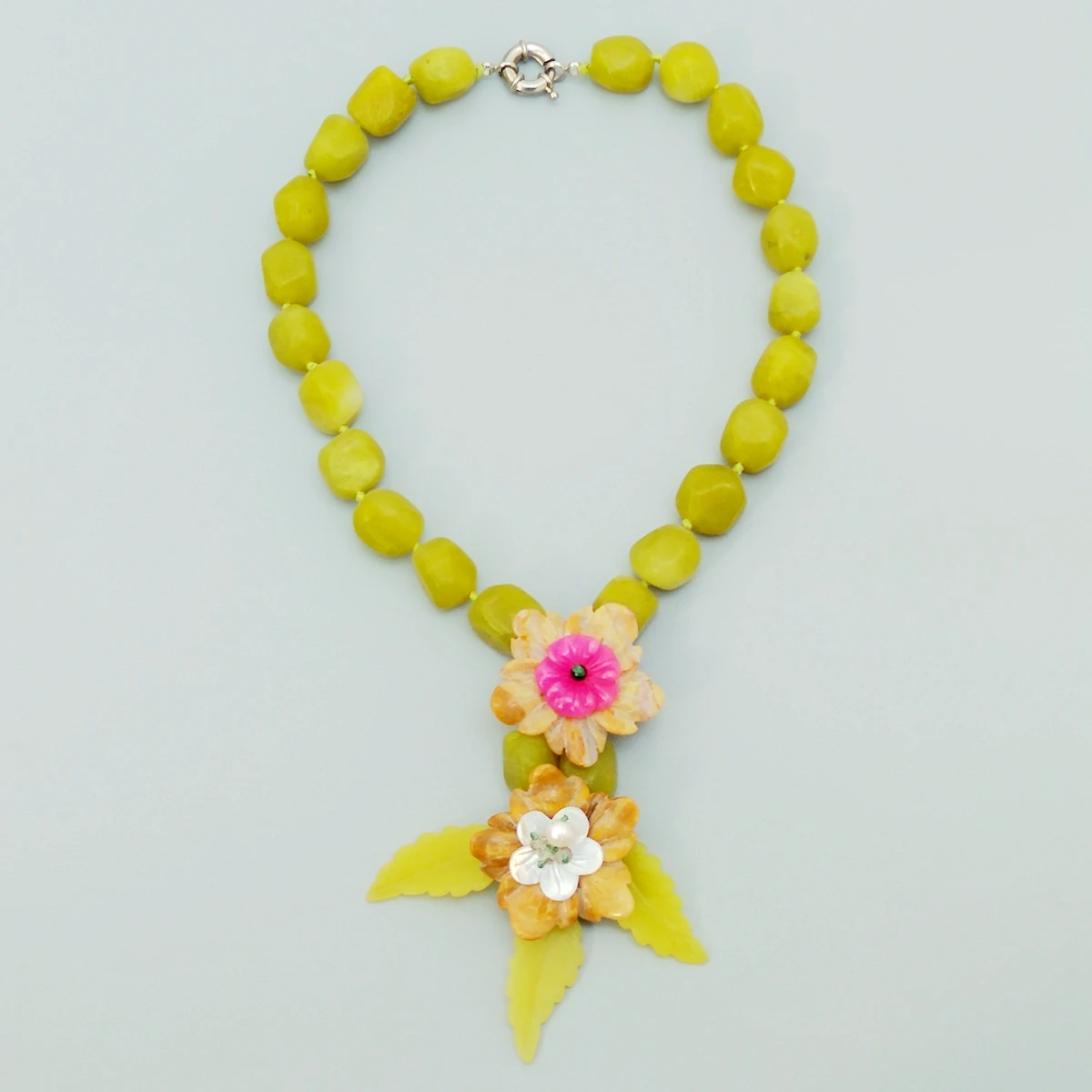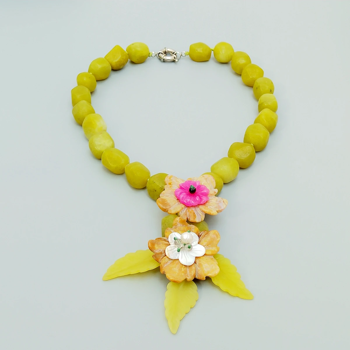 Lii Ji Yellow Necklace Lemon Jades Flowers Choker Necklace 47cm Stock Women Jewelry Gift