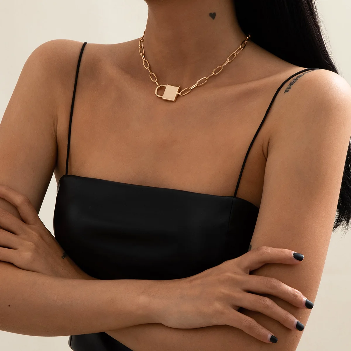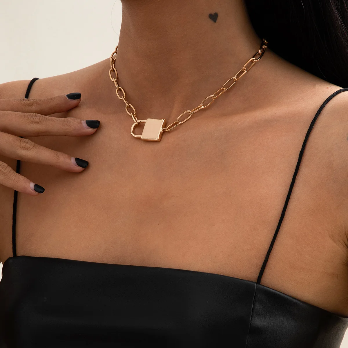 Lock Charms Necklaces For Women Gold Color Metal Key Necklace Design Jewelry Gift