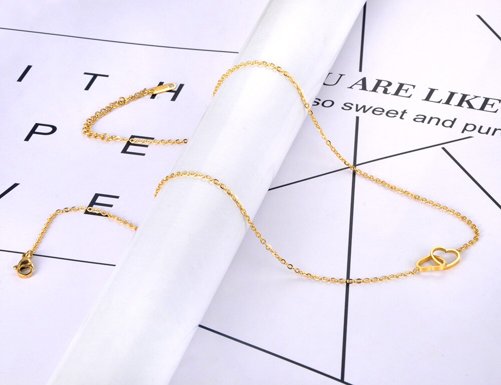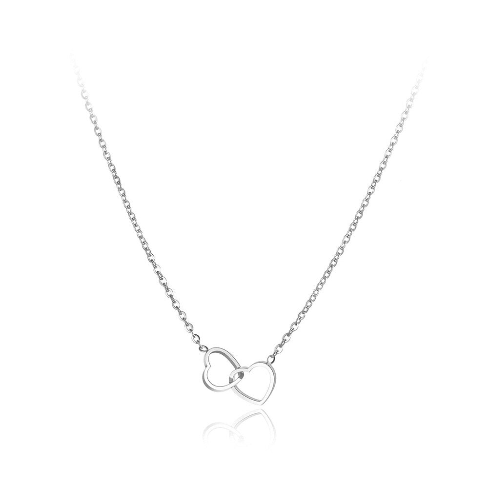 Lokaer Romantic Titanium Stainless Steel Double Heart Choker Necklaces Jewelry Chain Pendant Necklace For Women N21143
