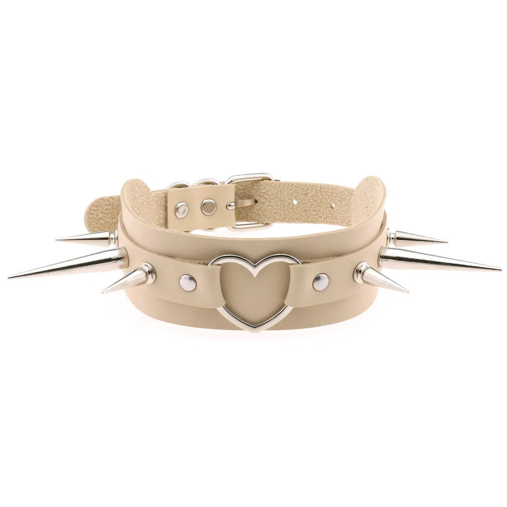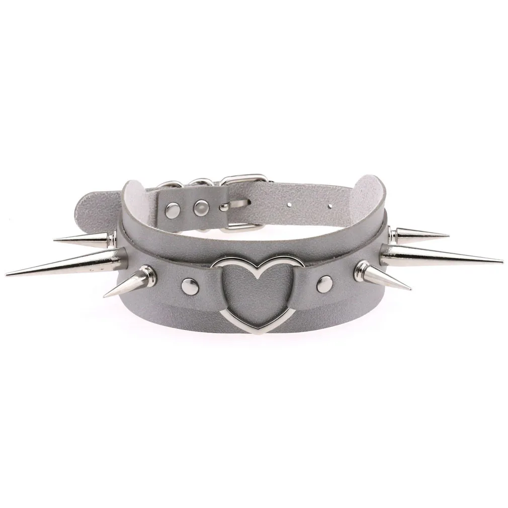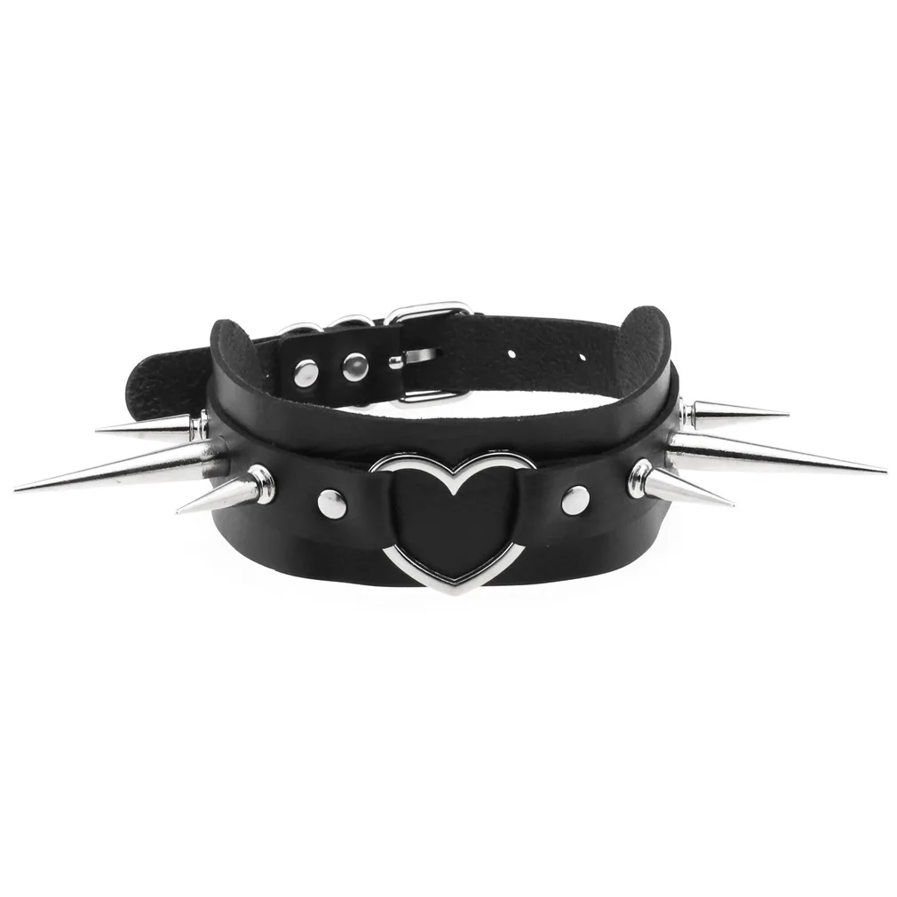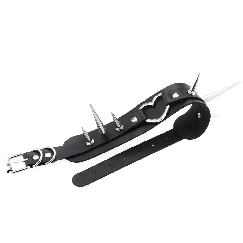 Long Spike Choker Goth Punk Faux Leather Collar For Women Men Cool Big Rivets Heart Chocker Necklaces Emo Halloween Cosplay Gift