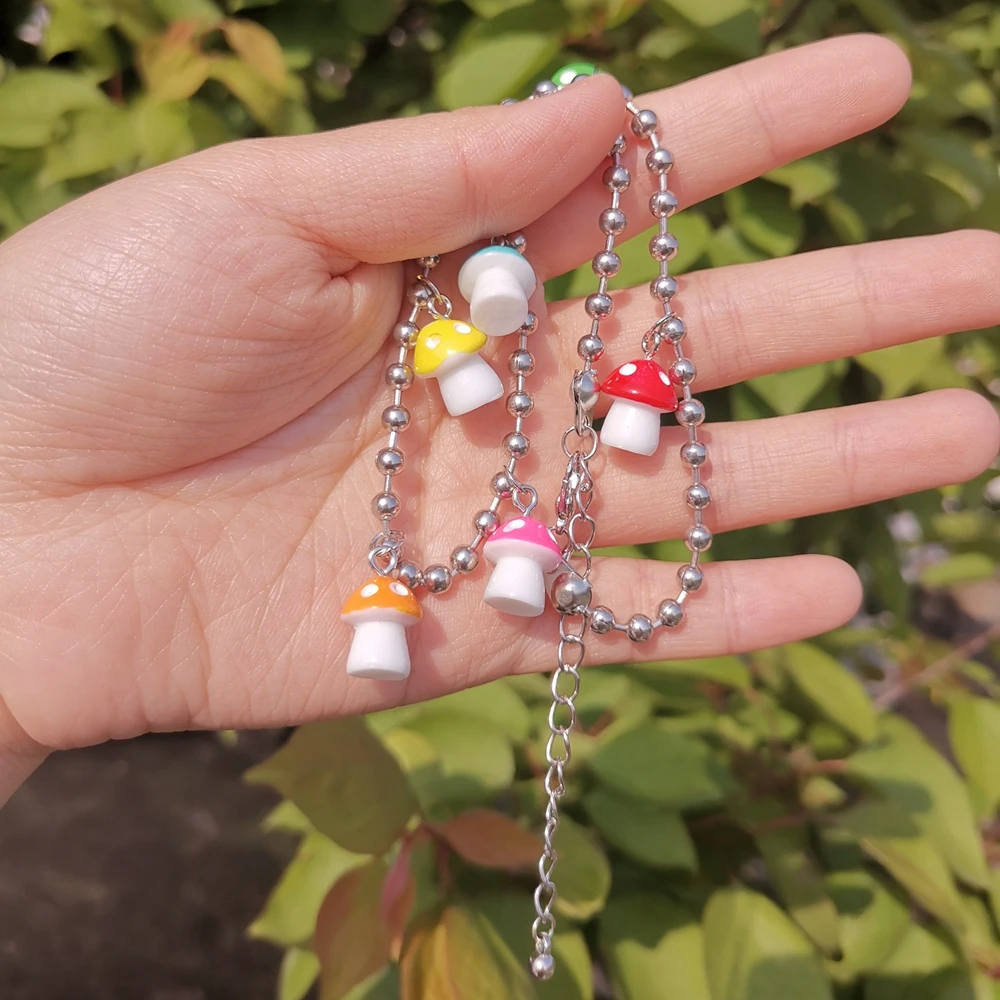 Lost Lady Cute Mushroom Pendants Necklaces Ball Link Chain Sweet Necklace for Women Girls Design Female Jewelry Party