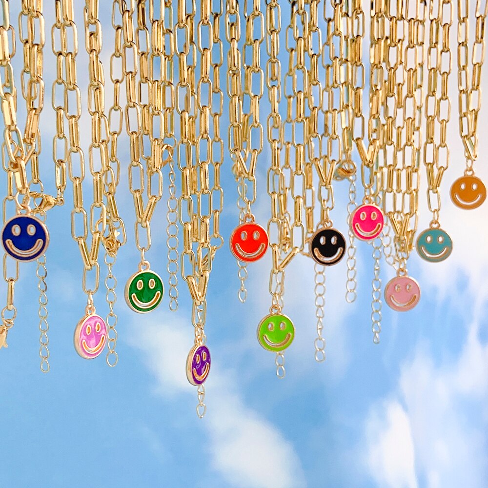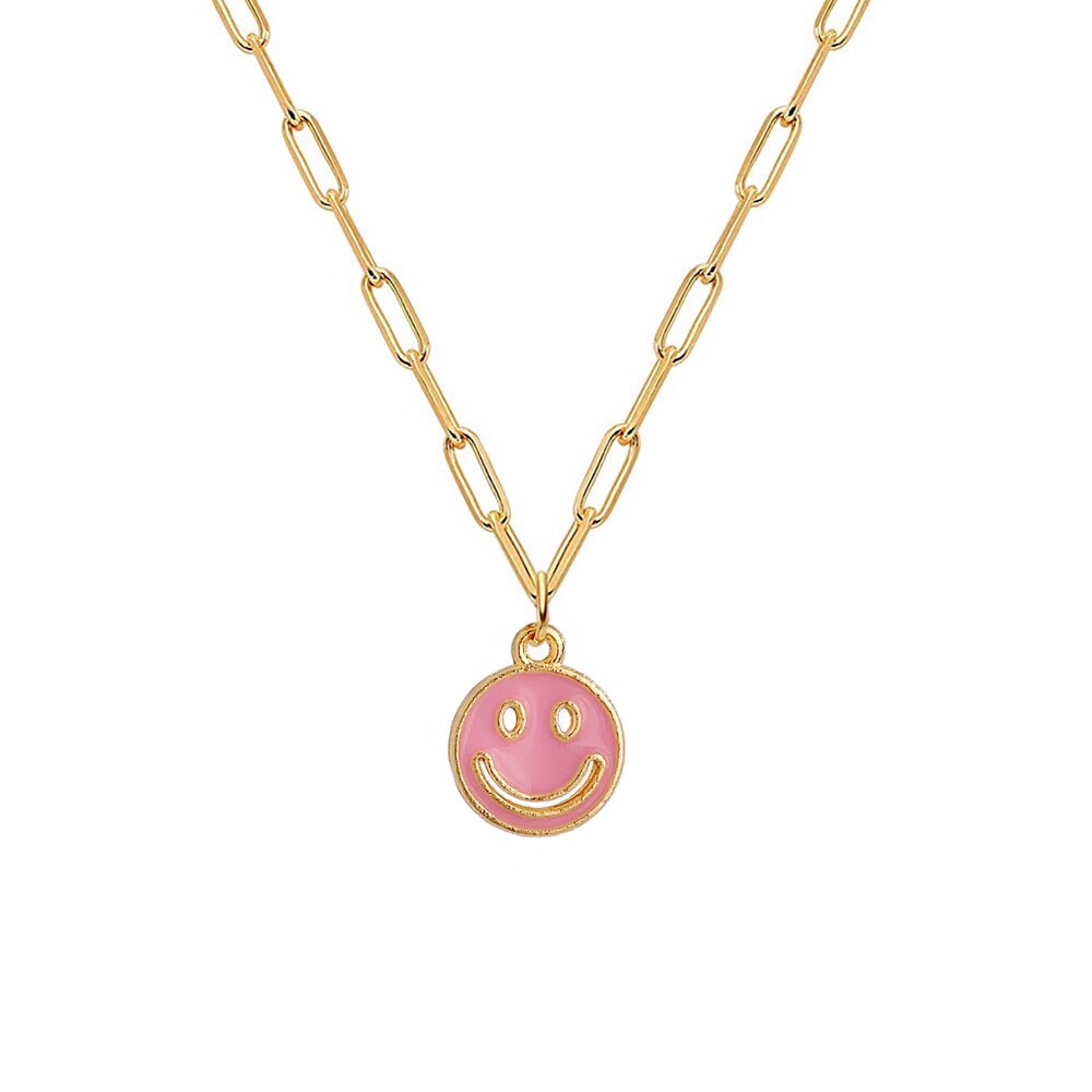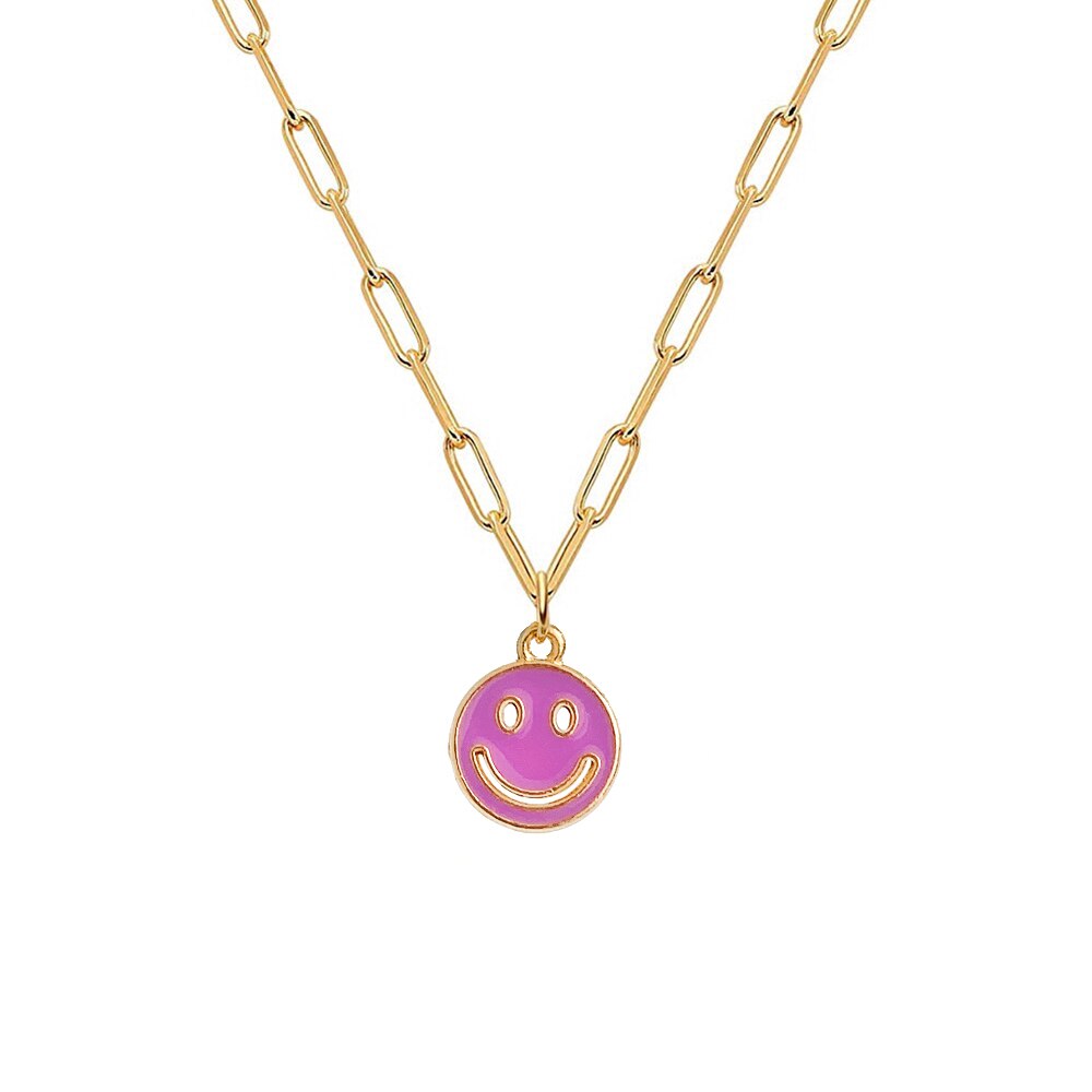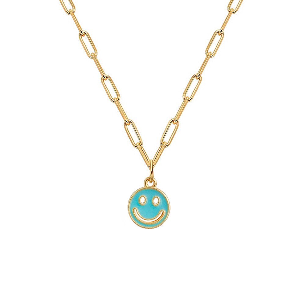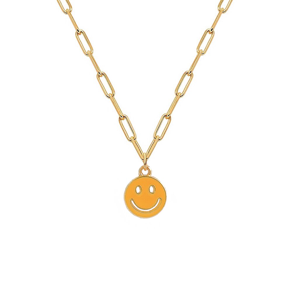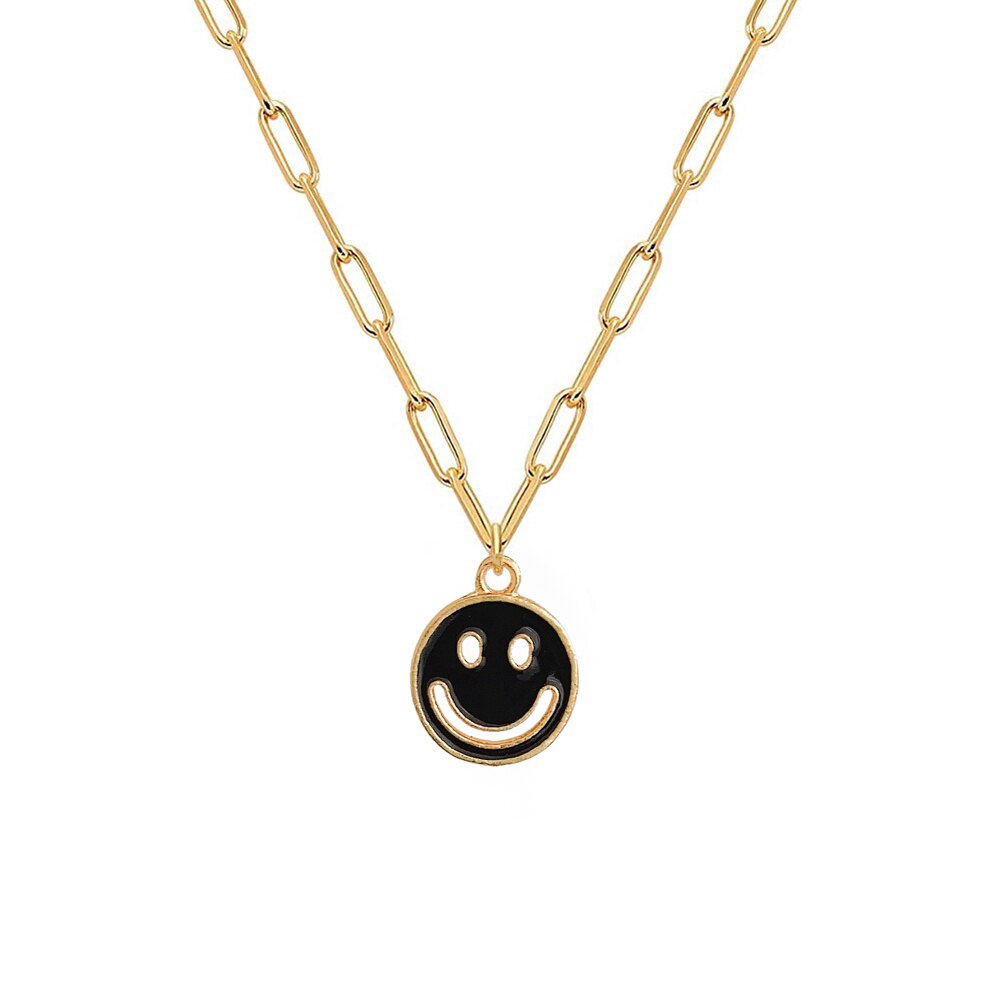 Lost Lady Sweater Smiley Face Pendant Necklace Double-Sided Clavicle Alloy Chain Women's Party Jewelry Gifts