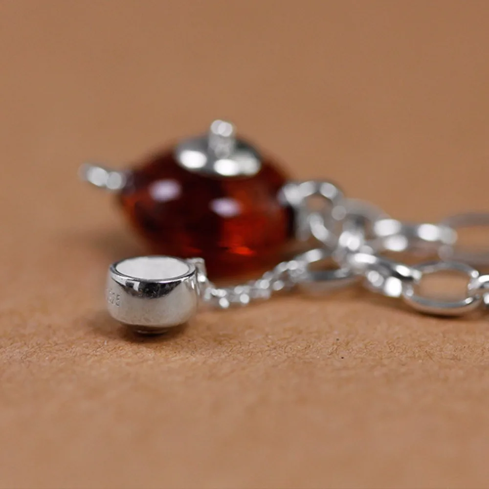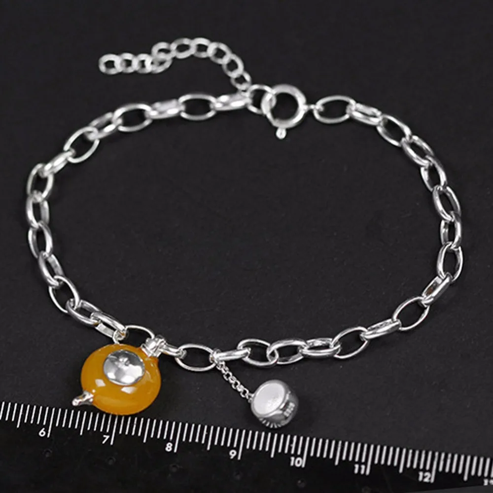 Real 925 Sterling Silver Natural Amber Handmade Fine Jewelry Vintage Cute Teapot Bracelets for Women Bijoux