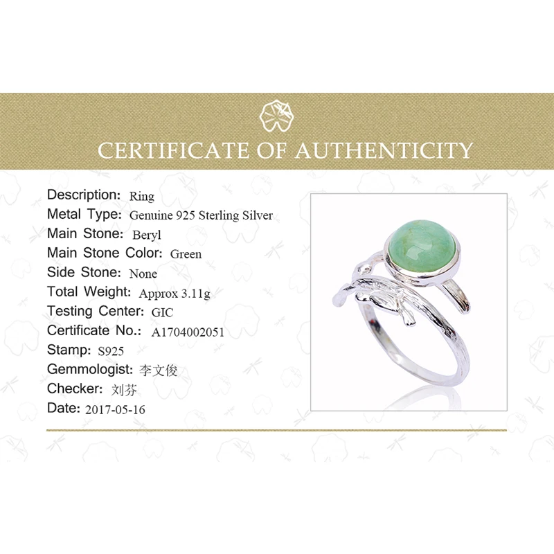 Real 925 Sterling Silver Natural Beryl Stone Creative Handmade Designer Fine Jewelry Vintage Rings for Women Bijoux