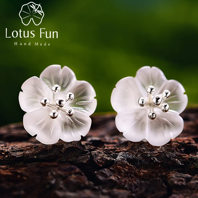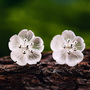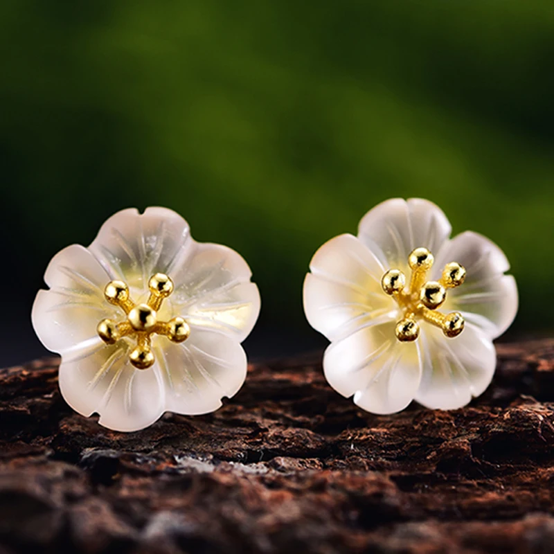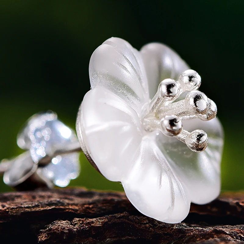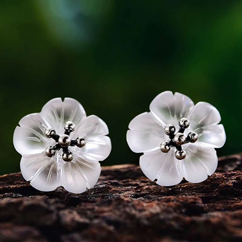 Real 925 Sterling Silver Stud Earring Natural Crystal Handmade Fine Jewelry Flower in the Rain Stud Earrings for Women