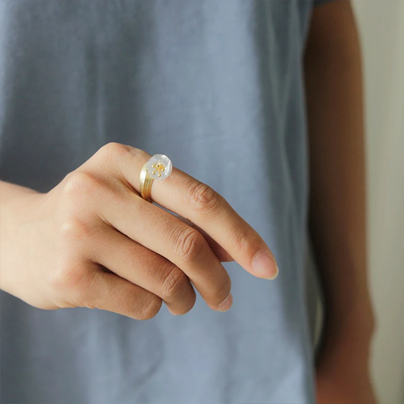 Real 925 Sterling Silver Natural Crystal Handmade Fine Jewelry Lily of the Valley Flower Rings For Women