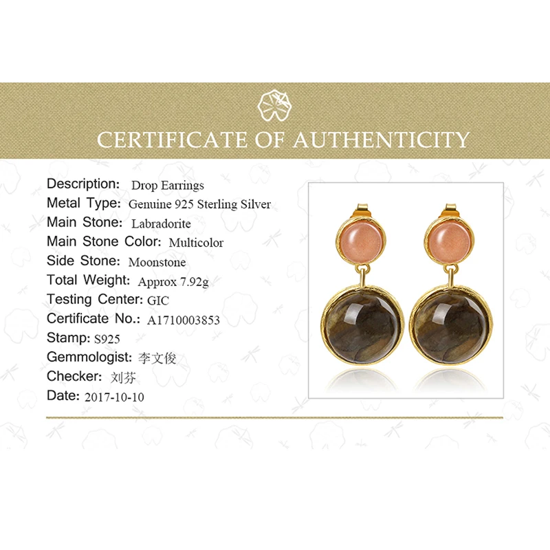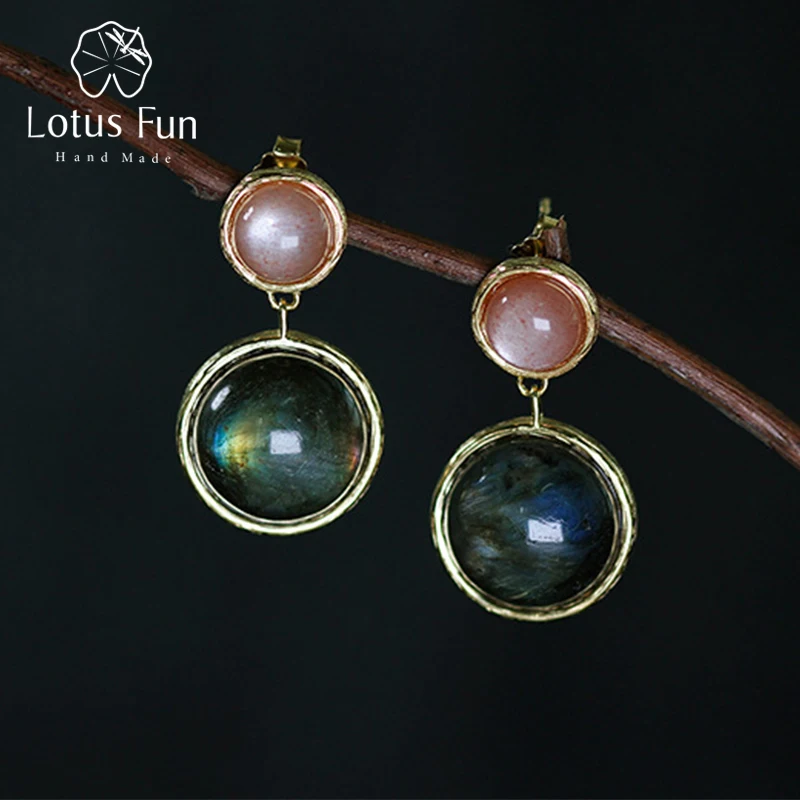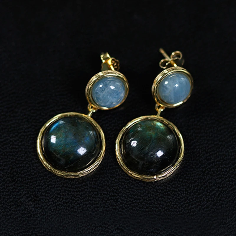 Real 925 Sterling Silver Natural Labradorite Handmade Fine Jewelry Mysterious Lake Dangle Earrings for Women Brincos