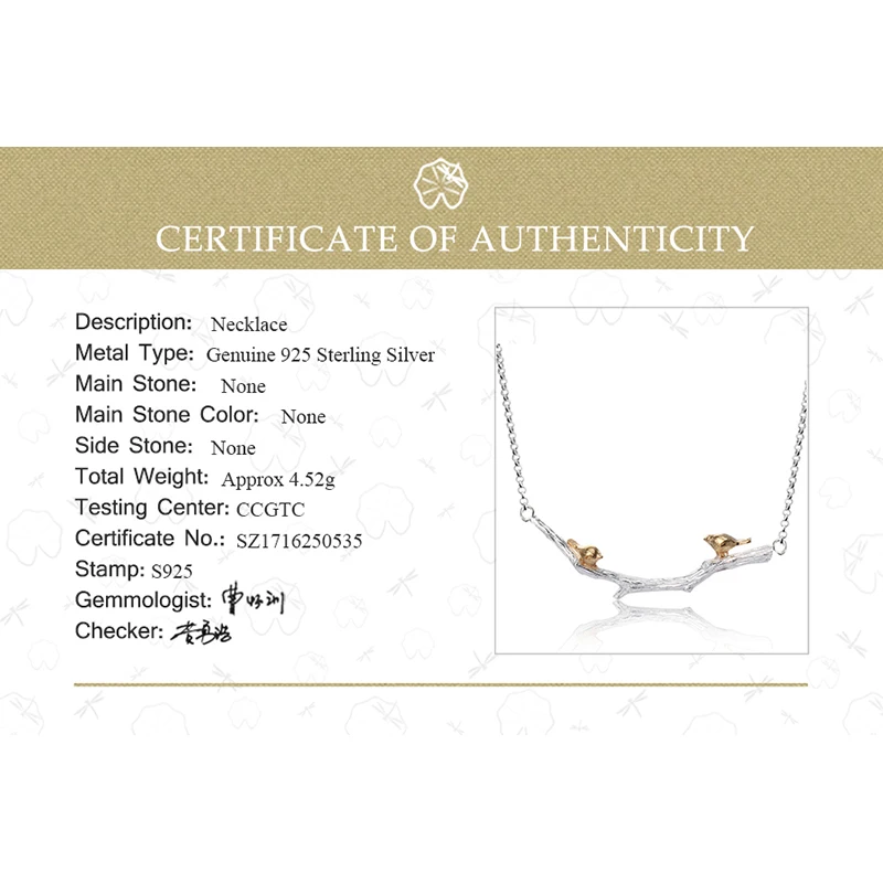 Real 925 Sterling Silver Natural Original Handmade Fine Jewelry Bird on Branch Necklace for Women Bijoux