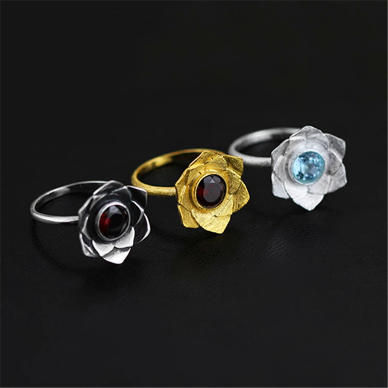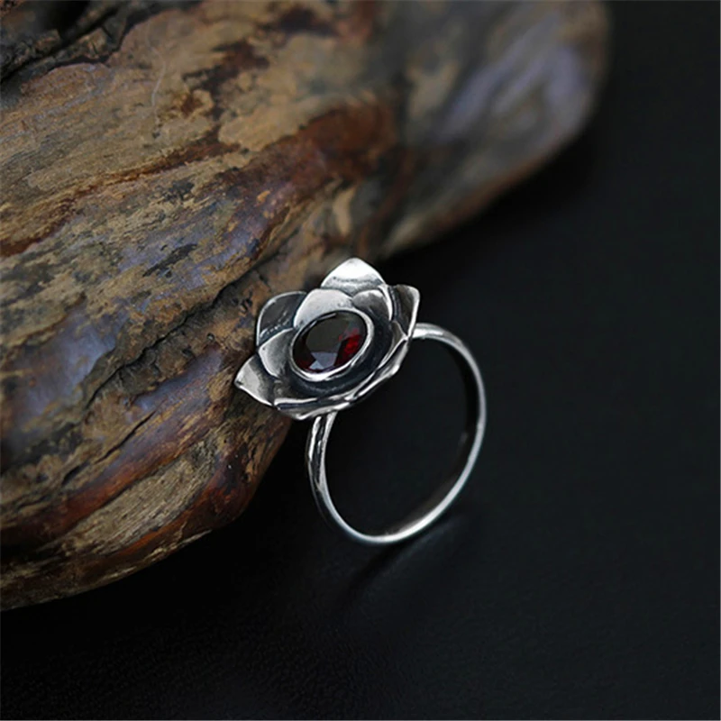 Real 925 Sterling Silver Natural Stone Handmade Original Designer Fine Jewelry Vintage Pure Lotus Female Rings Bijoux