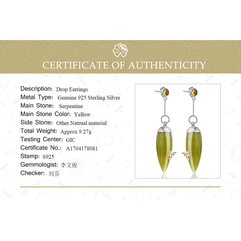 Real 925 Sterling Silver Natural Stone Original Handmade Fine Jewelry Vintage Elegant Drop Earrings for Women Brincos