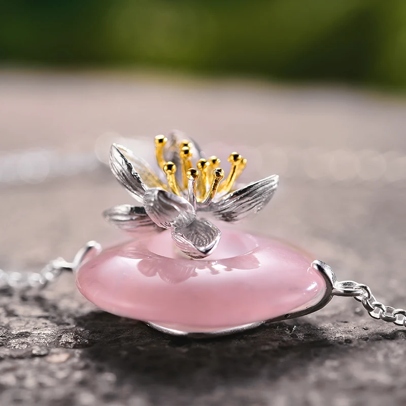 Real 925 Sterling Silver Natural Stones Creative Handmade Fine Jewelry Lotus Whispers Bracelet for Women Brincos