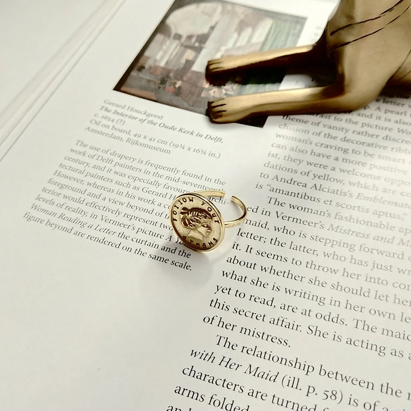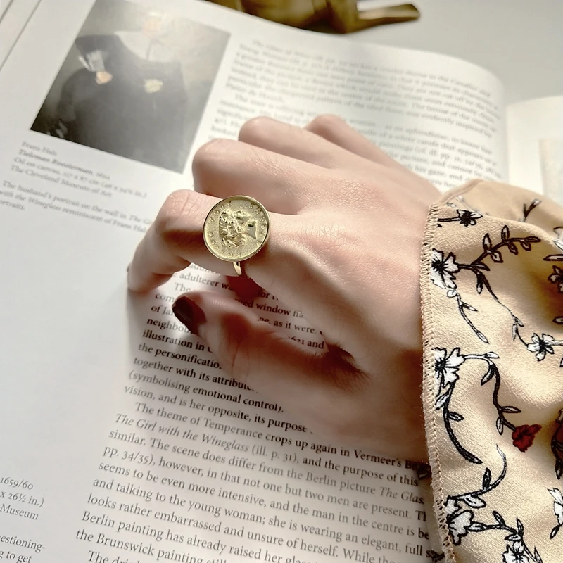 925 sterling silver figure coin rings gold round long hair girl figure emboss open rings for women 2020 charm jewelry