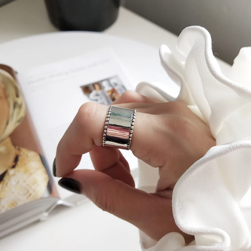 925 sterling silver glossy rings silver fashion vintage wild line open rings for women 2020 new festival jewelry gift