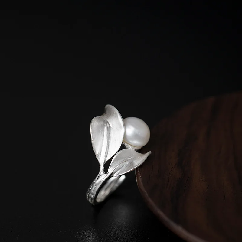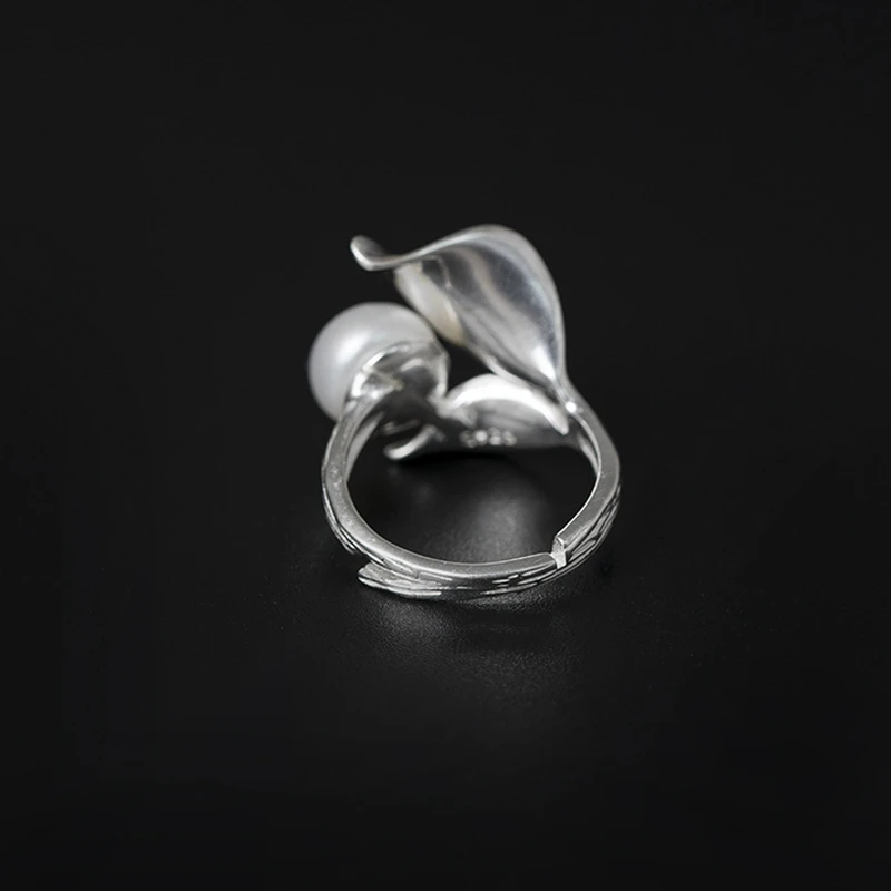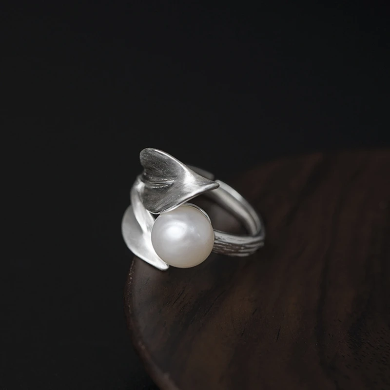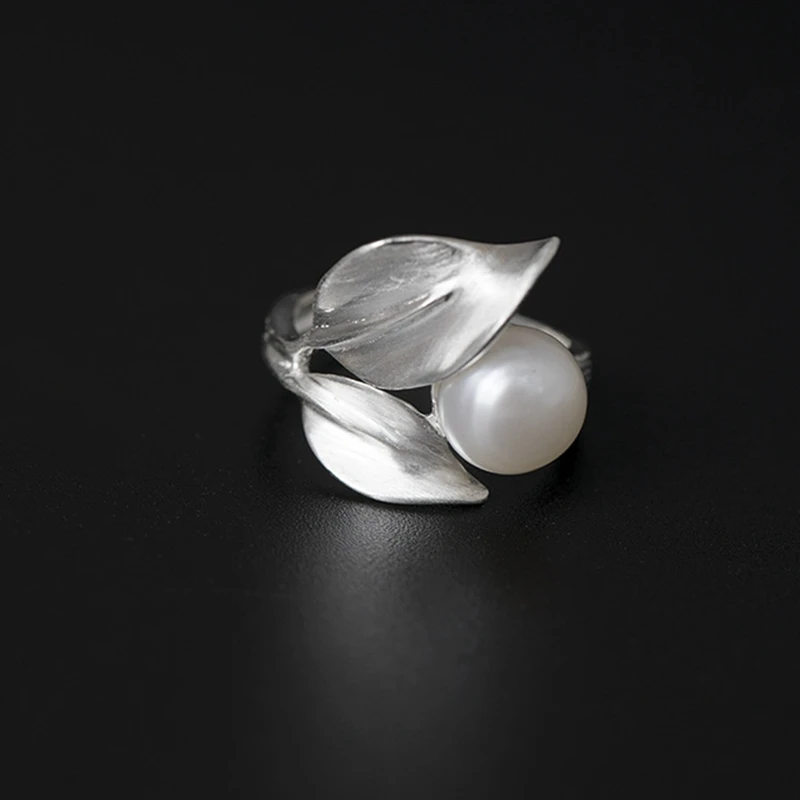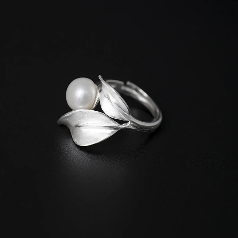 925 sterling silver leaves pearl rings adjustable personality leaves pearl rings for women charms pearl jewelry gift