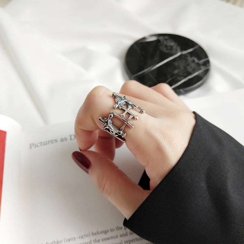 925 sterling silver new Jesus Cross open rings vintage match design index finger rings for women religion jewelry gift