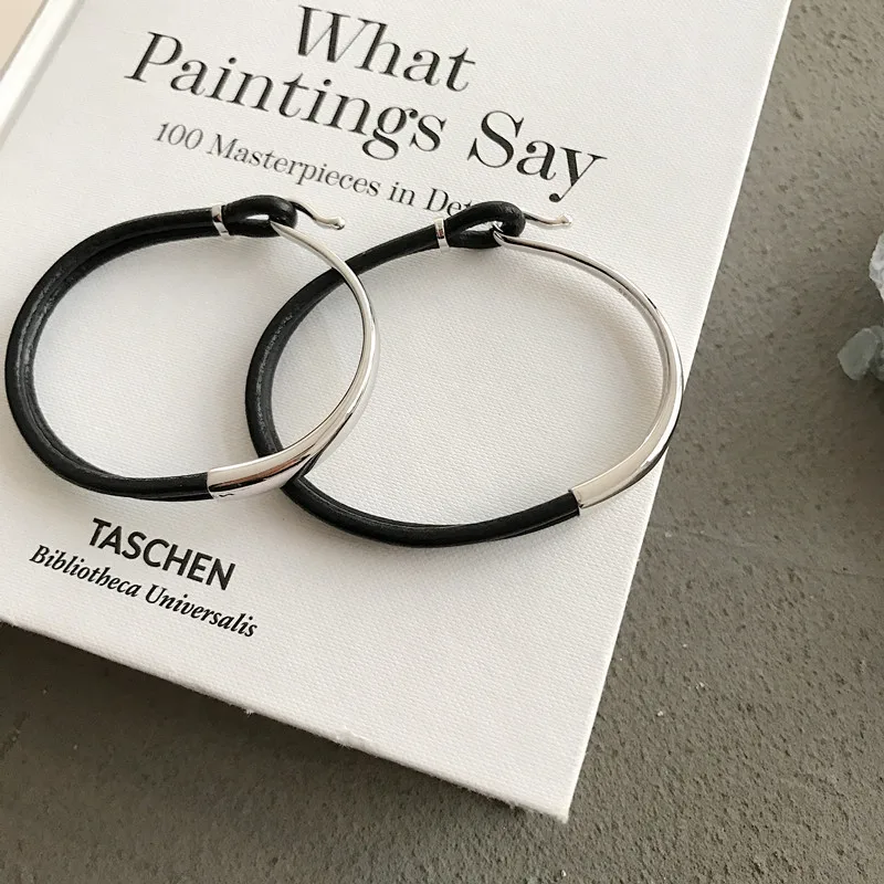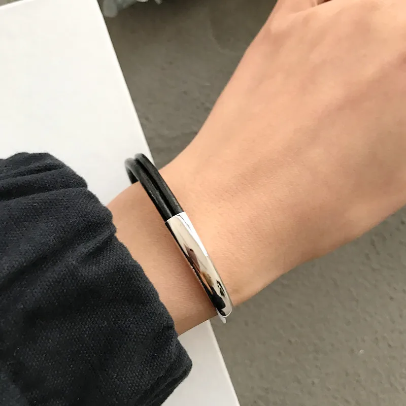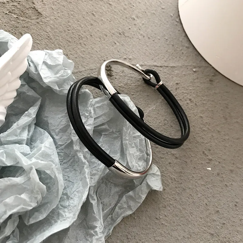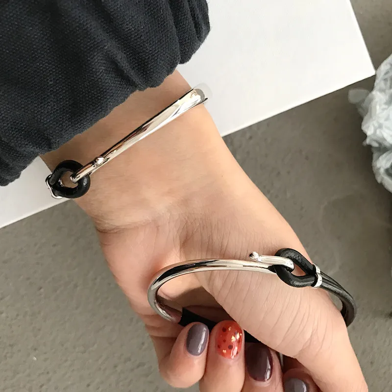 925 sterling silver new real Cowhide Asymmetry half bangles fashion lovers' bangles for Women Men festival jewelry gift