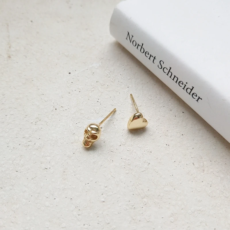 925 sterling silver skeleton heart earrings simple fashion design skeleton love heart stud earrings for women jewelry