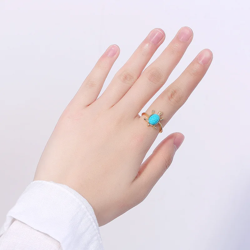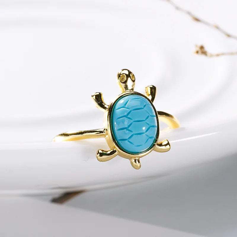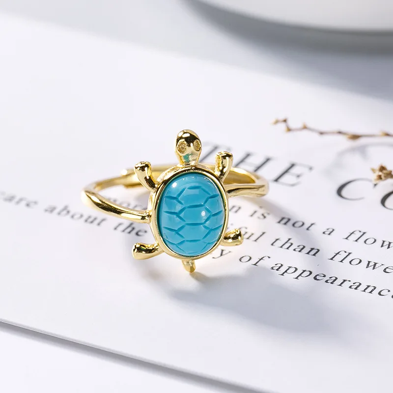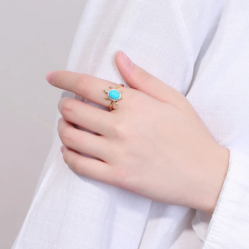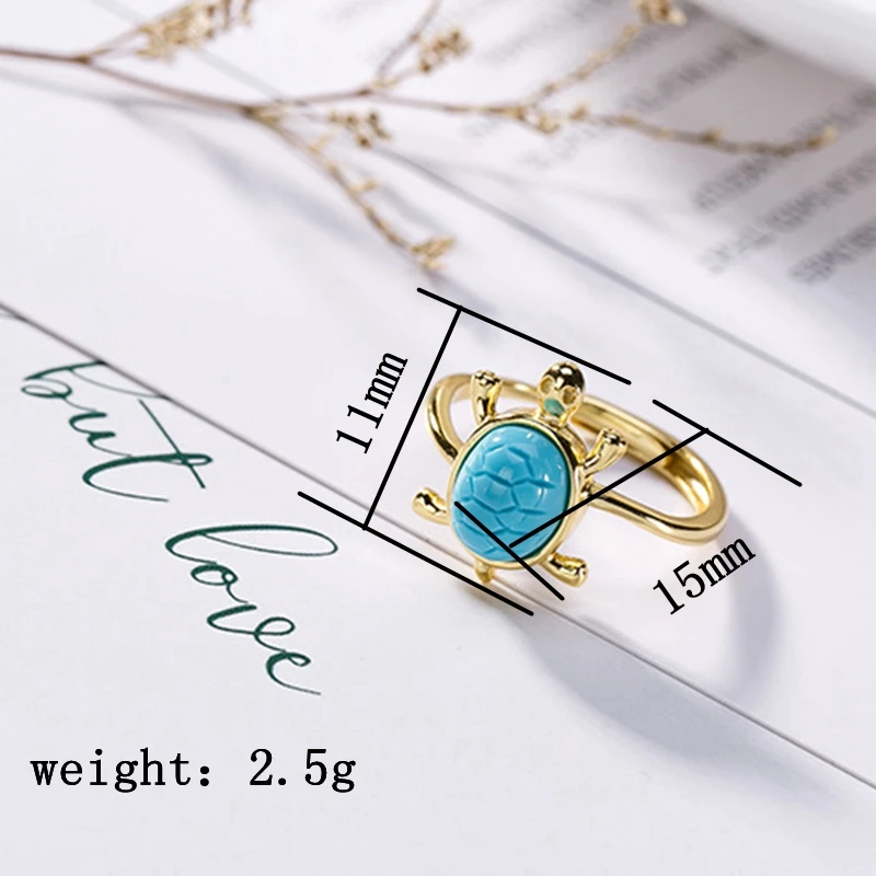 925 sterling silver turquoise tortoise rings natural Turquoise cute small animals adjustable rings for women jewelry