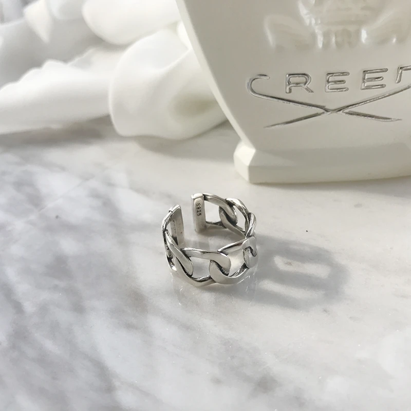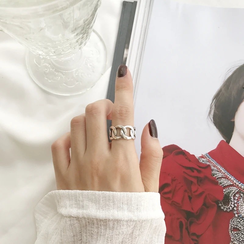925 sterling silver wide chain rings silver vintage wild square strip chain open rings for women new fine jewelry gift