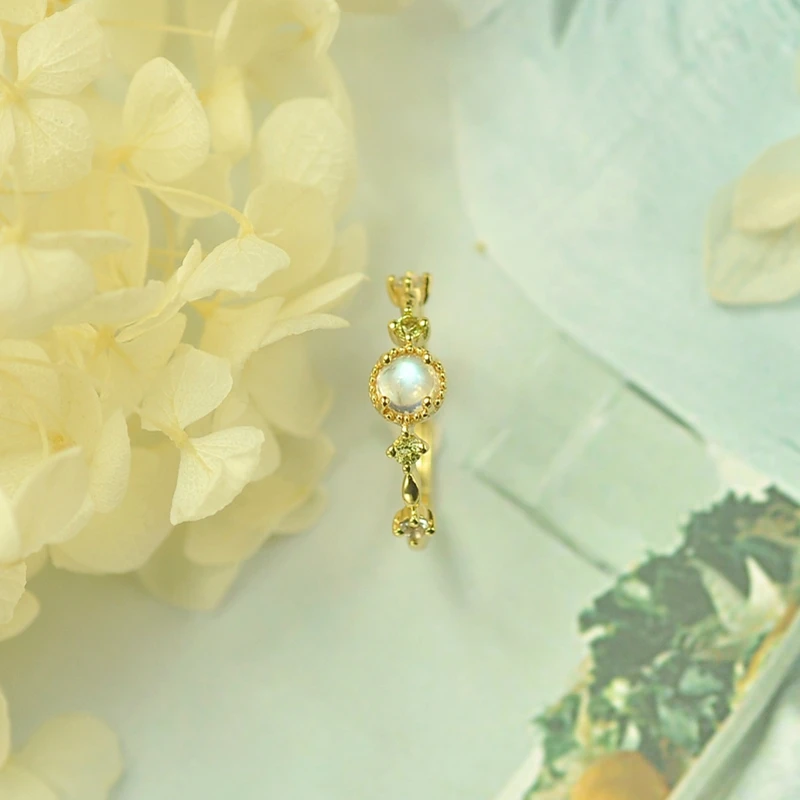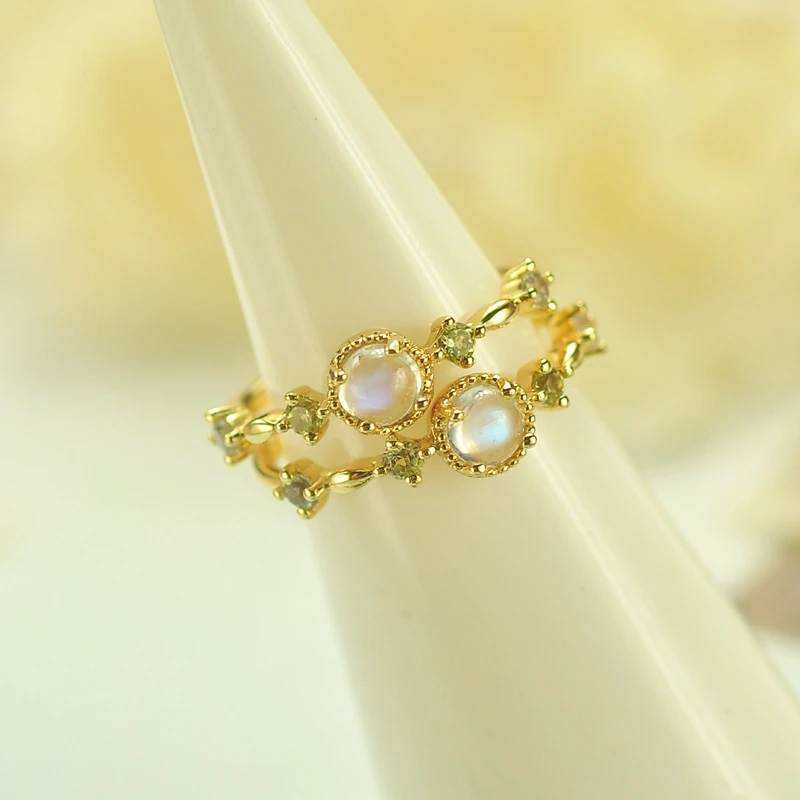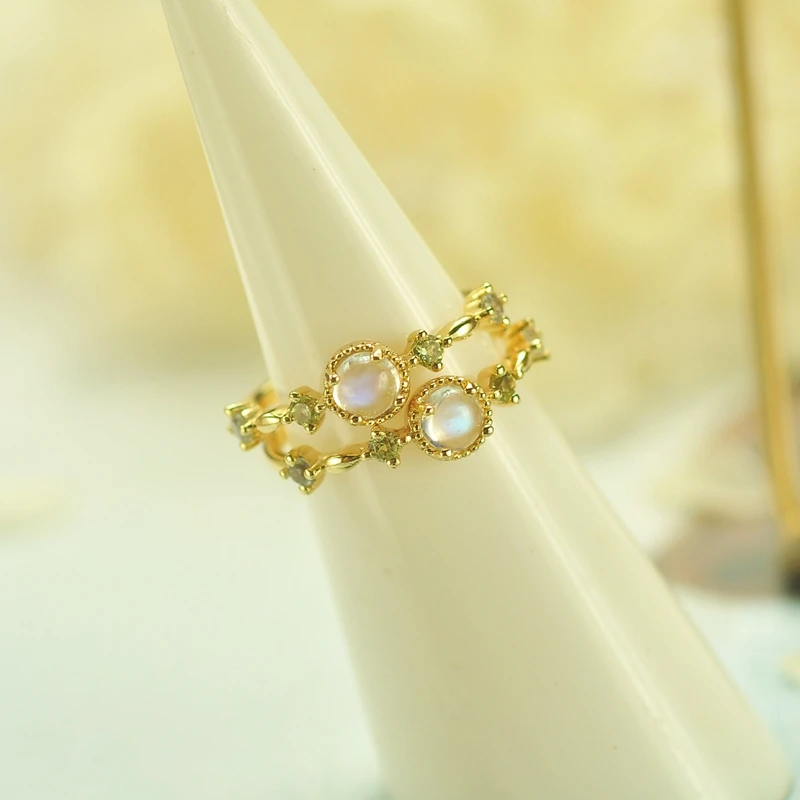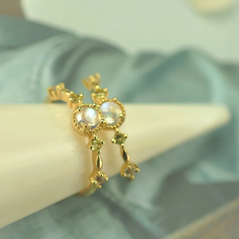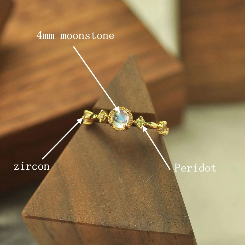 925 sterling silver zircon moonstone rings gold natural Peridot moonstone open rings for women luxurious jewelry charms