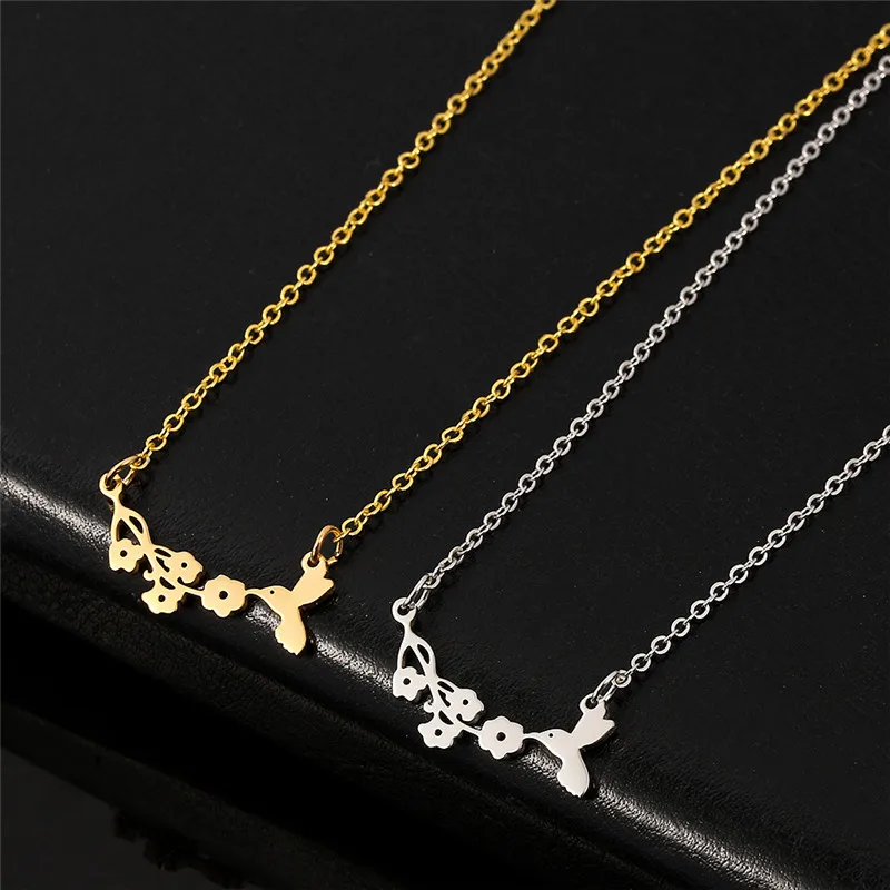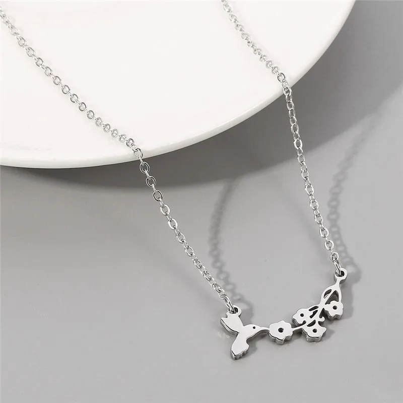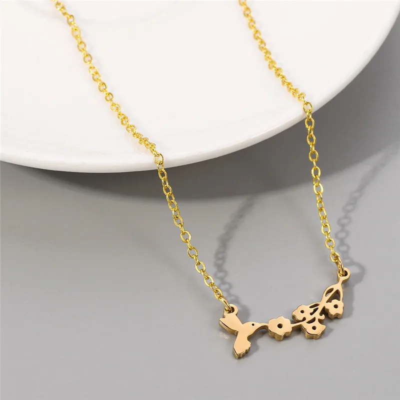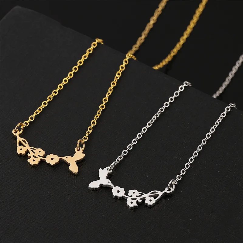 Lovely Bird And Flower Charm Necklace Costume Jewelry for Women Gold Color Lovely Bird Bites Branch Necklace For Women