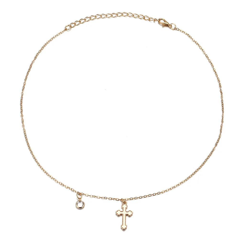 Lovely Necklace For Women Choker Cross Necklace Crystal Girl Friend Collares Gold Color Jewelry