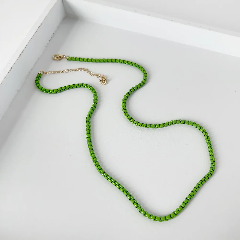 LOVOACC Minimalist Multicolor Painting Brass Box Chains Necklaces for Women Rainbow Link Chain Stacked Necklace Beach Jewelry